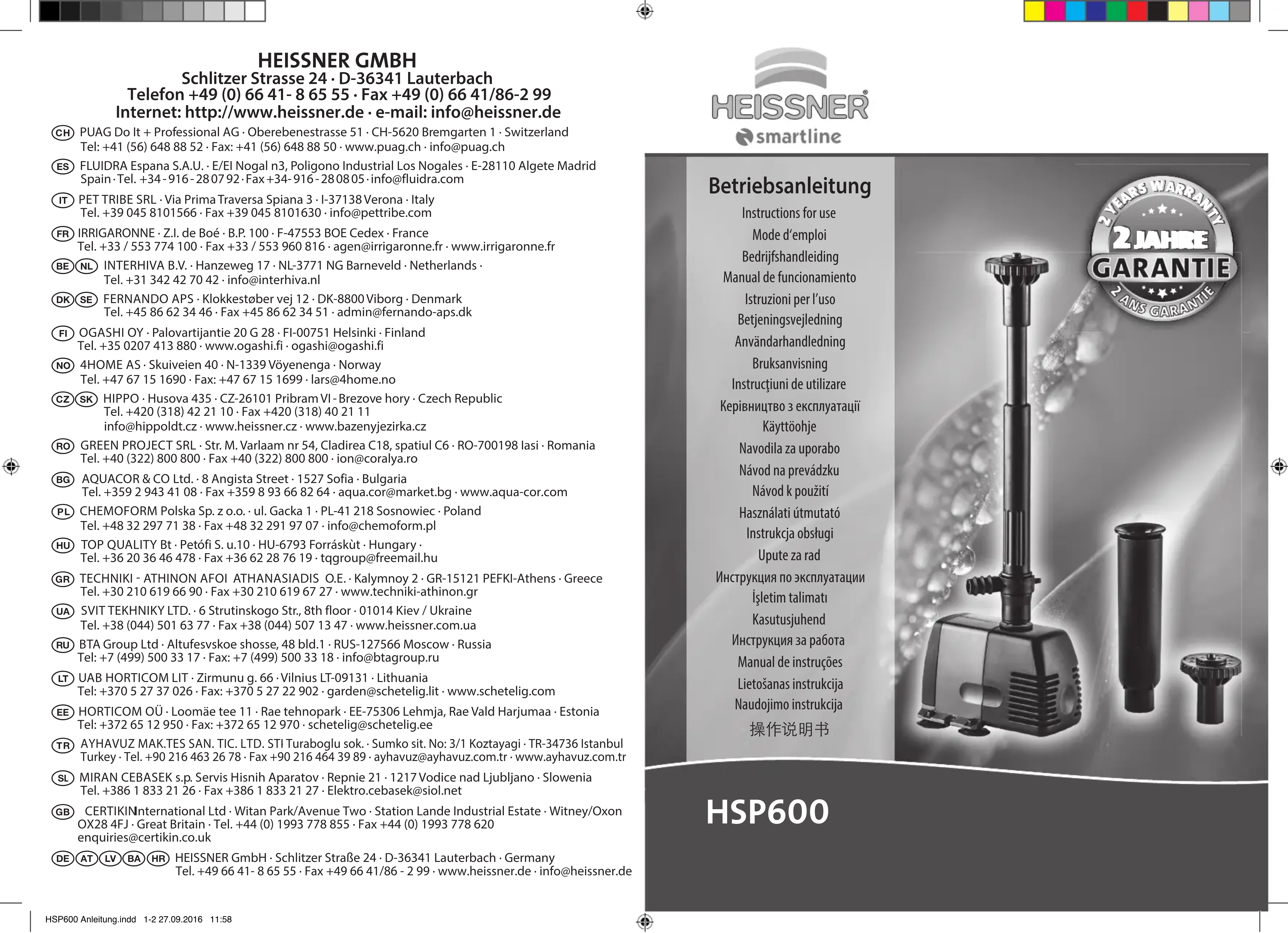 HSP60000 - Pompe à eau Heissner - Notice d'utilisation et mode d'emploi gratuit