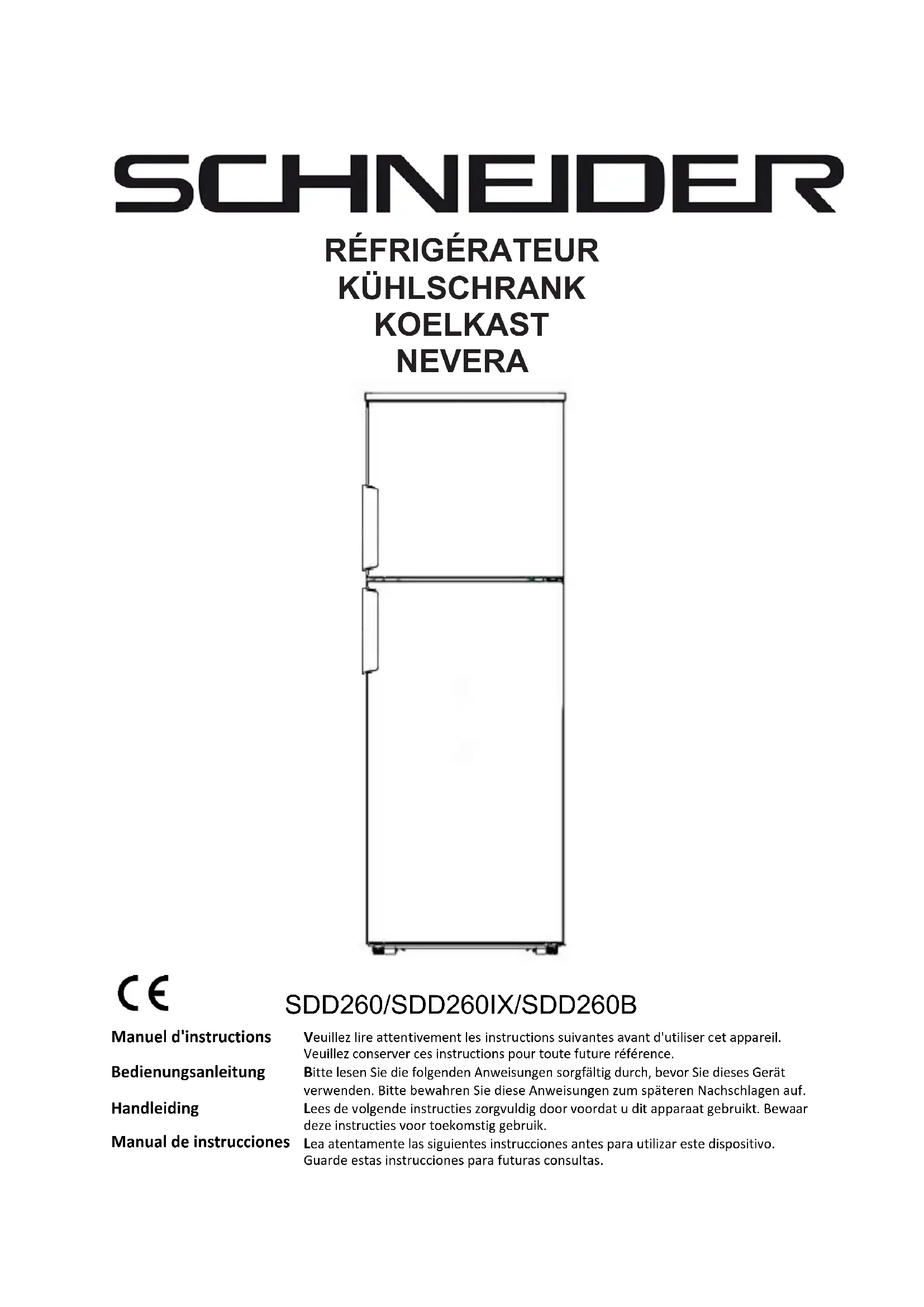 SDD260B - Réfrigérateur SCHNEIDER - Notice d'utilisation et mode d'emploi gratuit