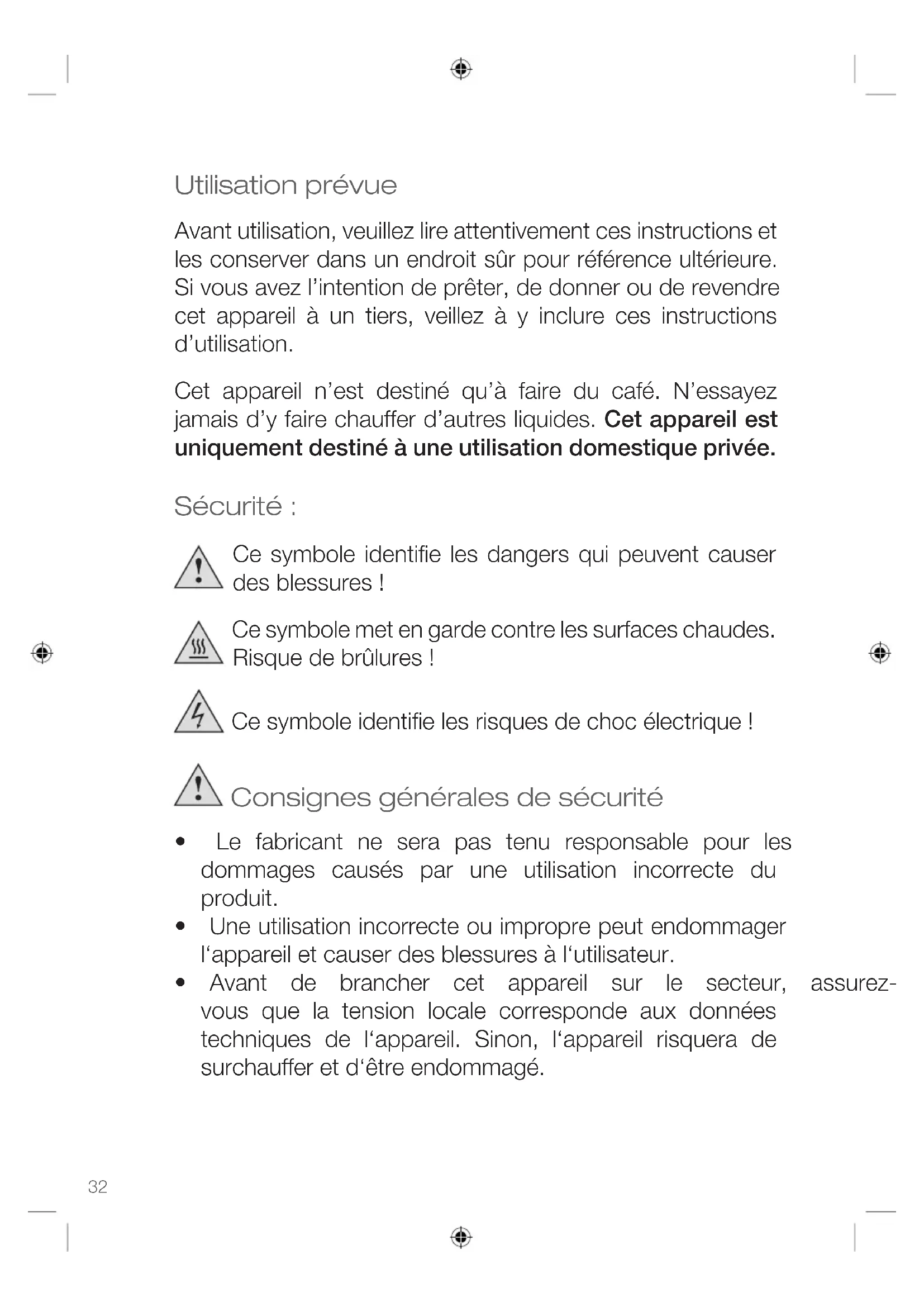 - N’ouvrez jamais le couvercle du ltre ou le porte-ltre respectivement pendant le fonctionnement car l’appareil émet de la vapeur chaude. Risque de brûlures graves !FRANÇAIS Manuel d‘instructions