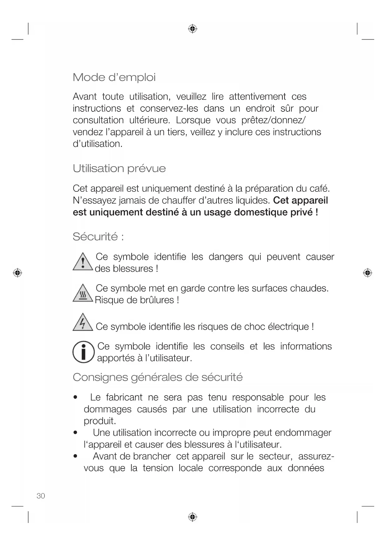 - Votre cafetière est uniquement conçue pour préparer du café.