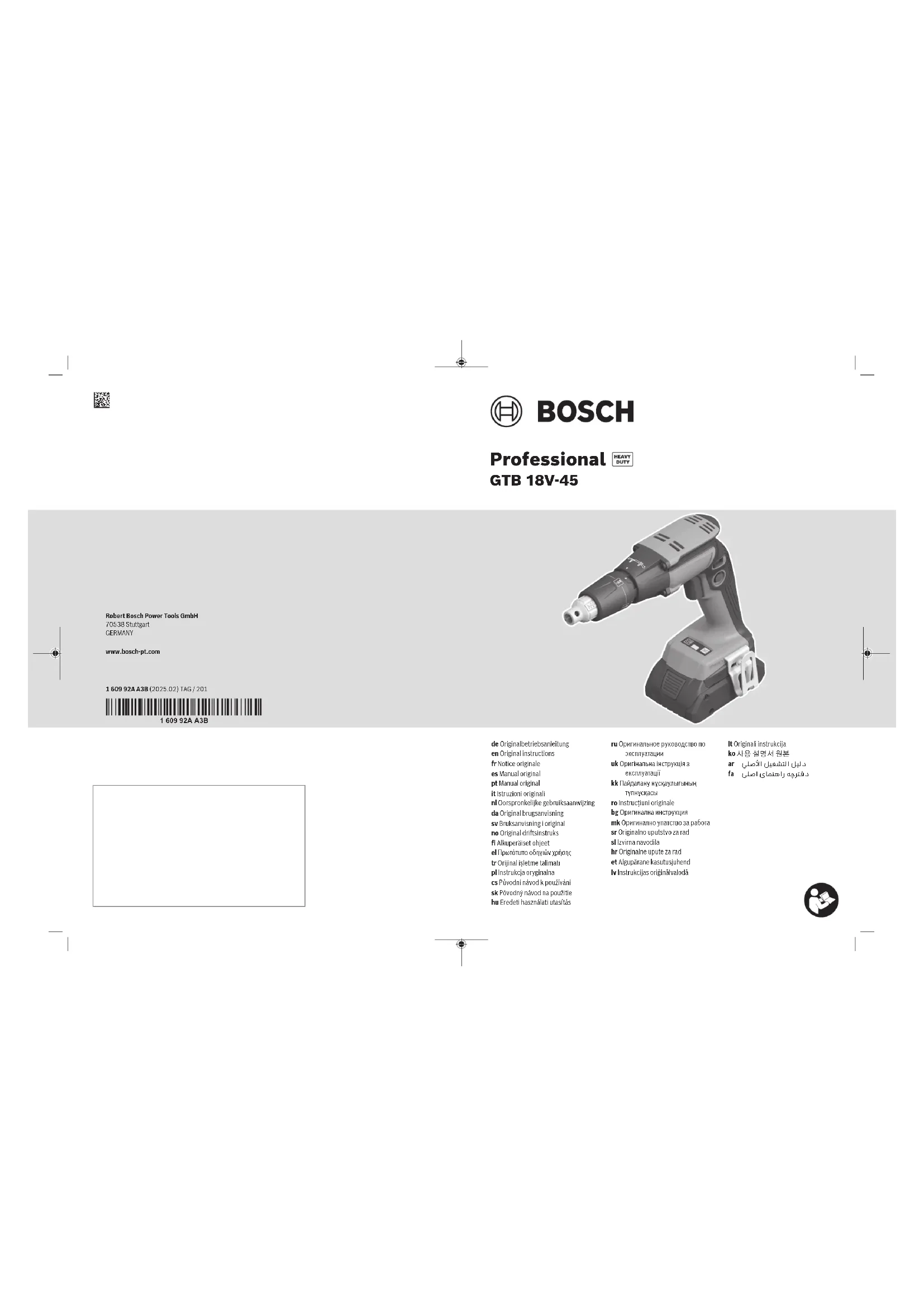 Retrouvez gratuitement la notice de l'appareil GTB 18V45 Professional BOSCH au format PDF.