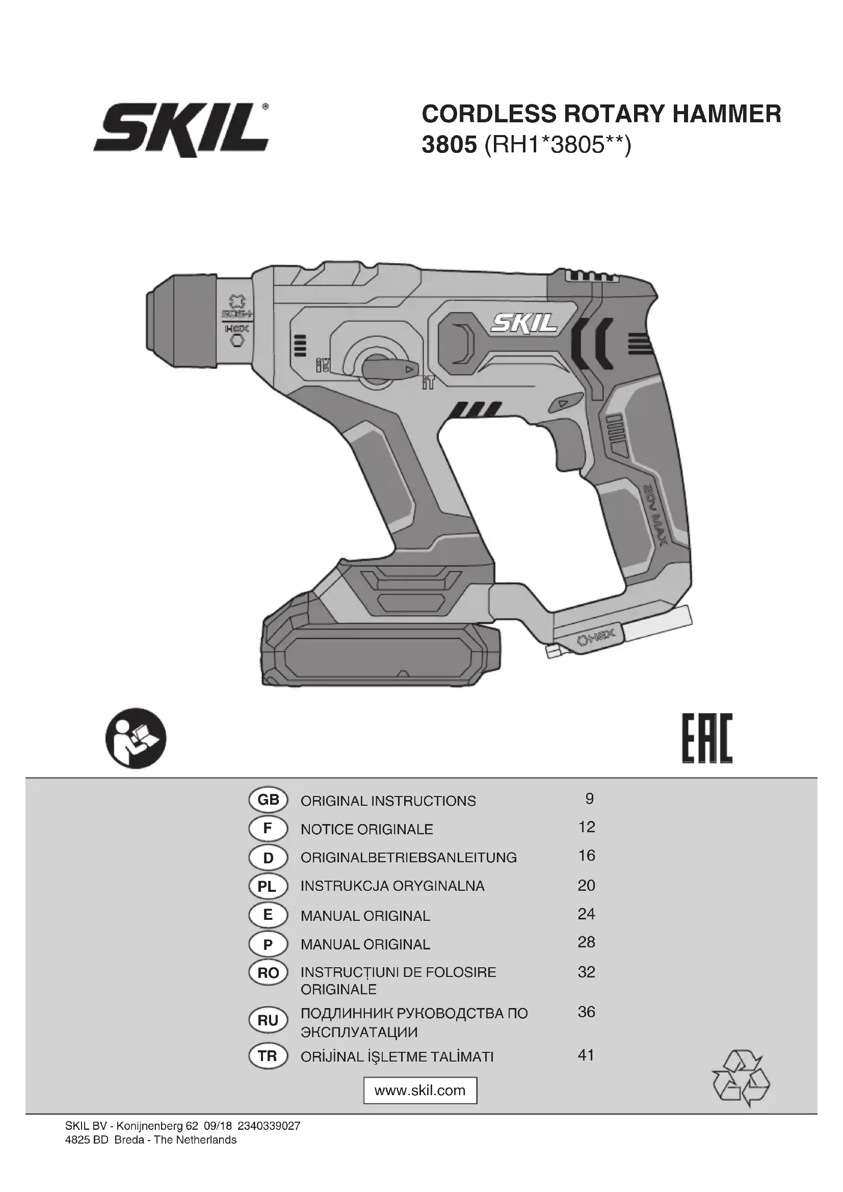 Retrouvez gratuitement la notice de l'appareil 3805 CA SKIL au format PDF.