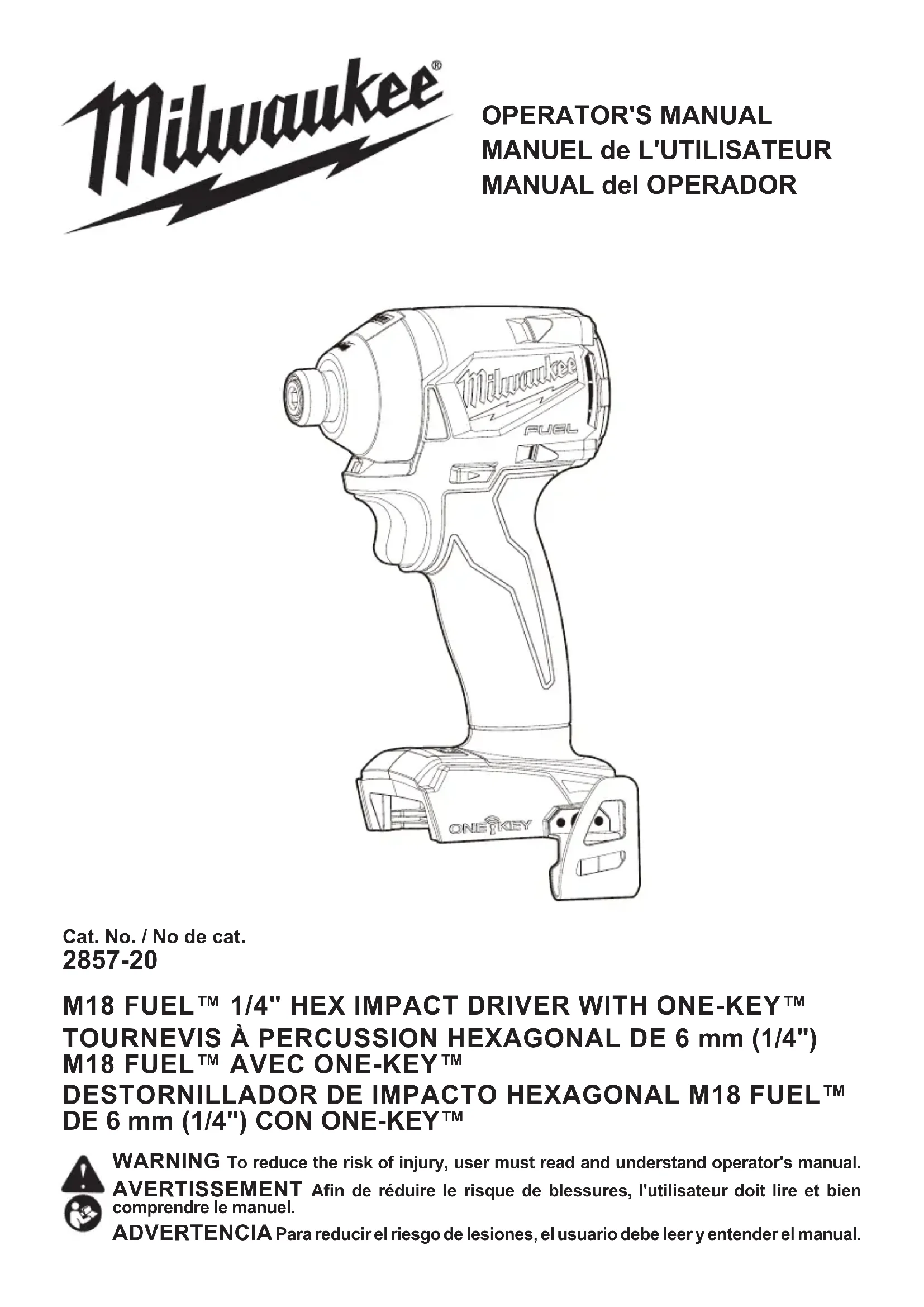 M18 Fuel OneKey 285722CT - Visseuse MILWAUKEE - Notice d'utilisation et mode d'emploi gratuit