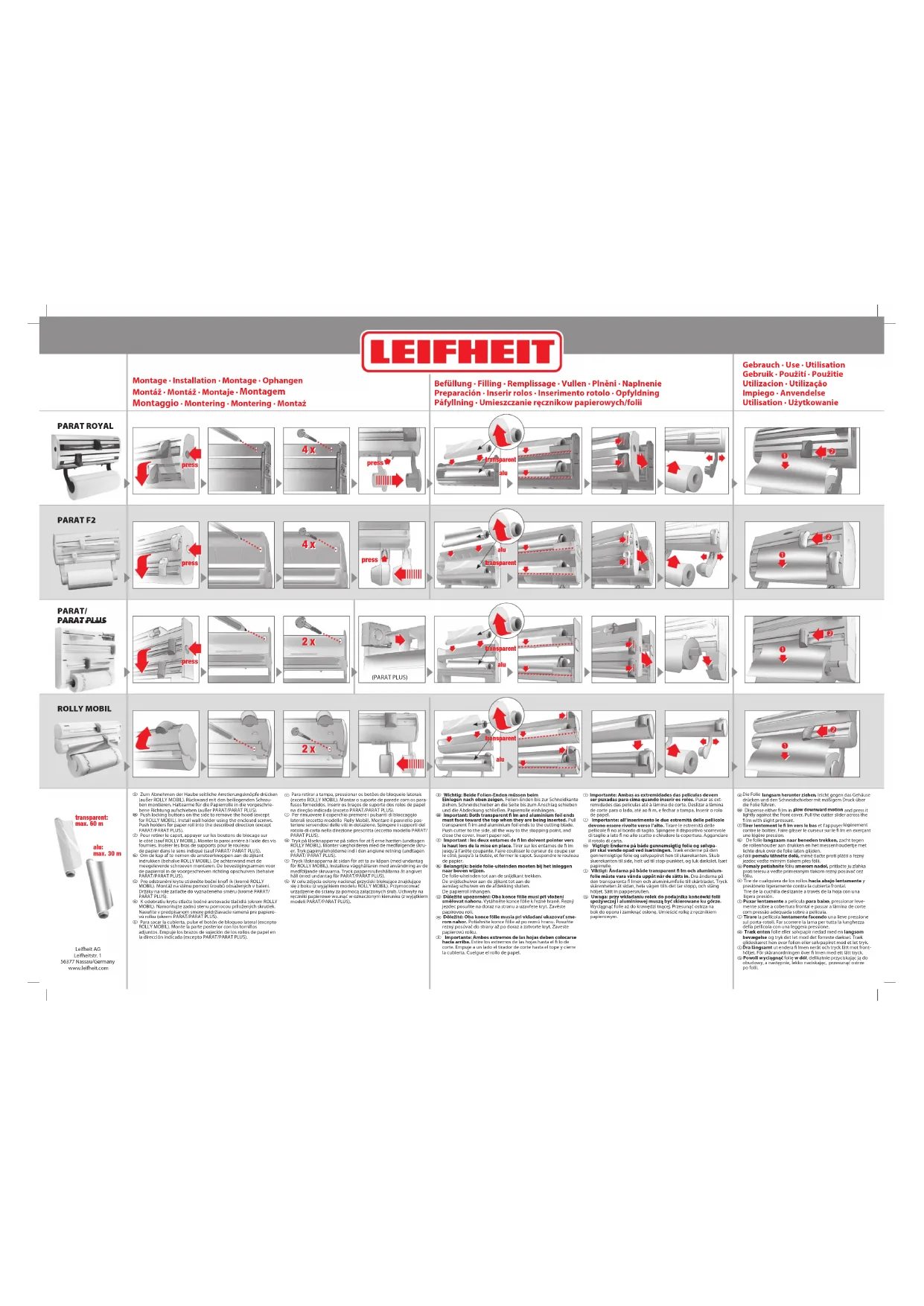 Retrouvez gratuitement la notice de l'appareil Parat Royal Leifheit au format PDF.