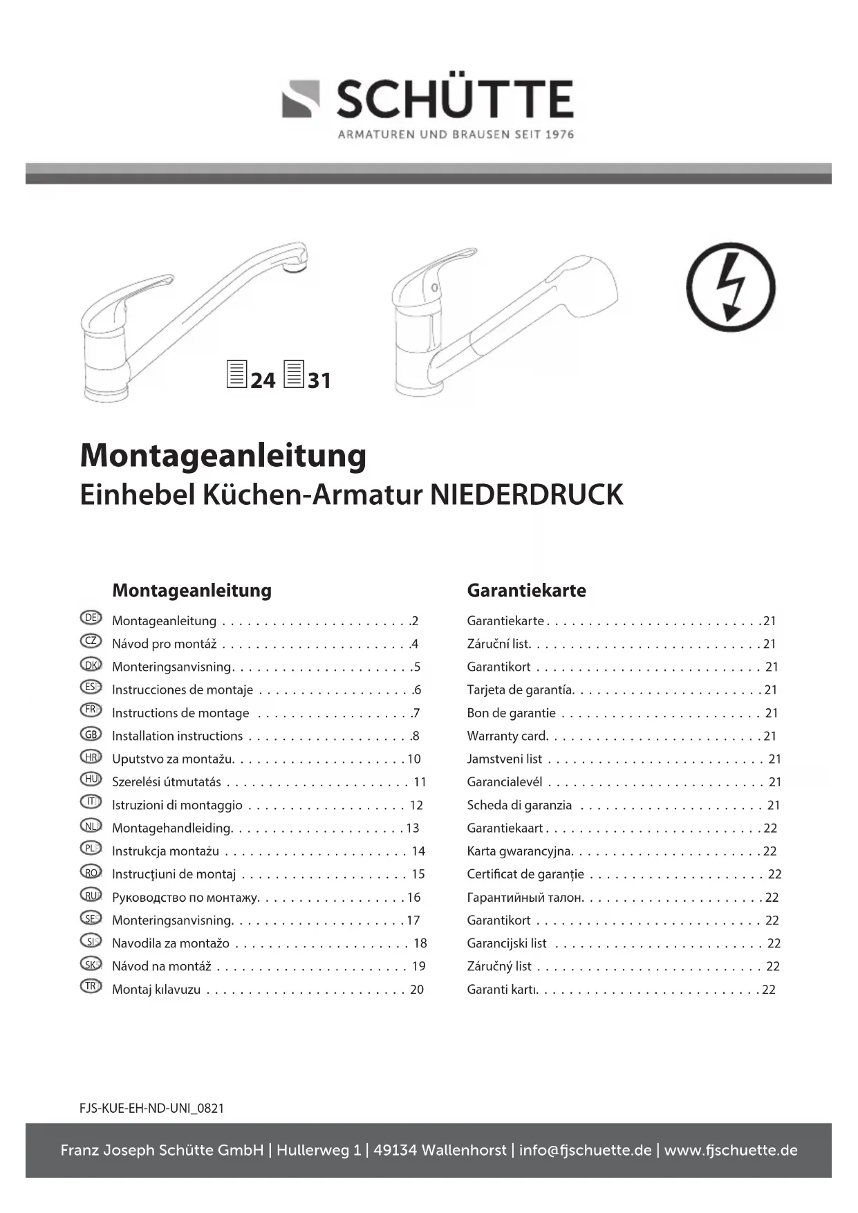 - Veuillez noter qu'une cartouche est une pièce d'usure et qu'elle doit être remplacée tous les 1 à 2 ans si elle présen- te une eau très calcaire ou salie. Une instruction illustrée pour le remplacement de la car- touche se trouve sur notre site internet sous le lien suivant: web.fjschuette.de/Austausch_Kartusche-Ventiloberteil.pdf