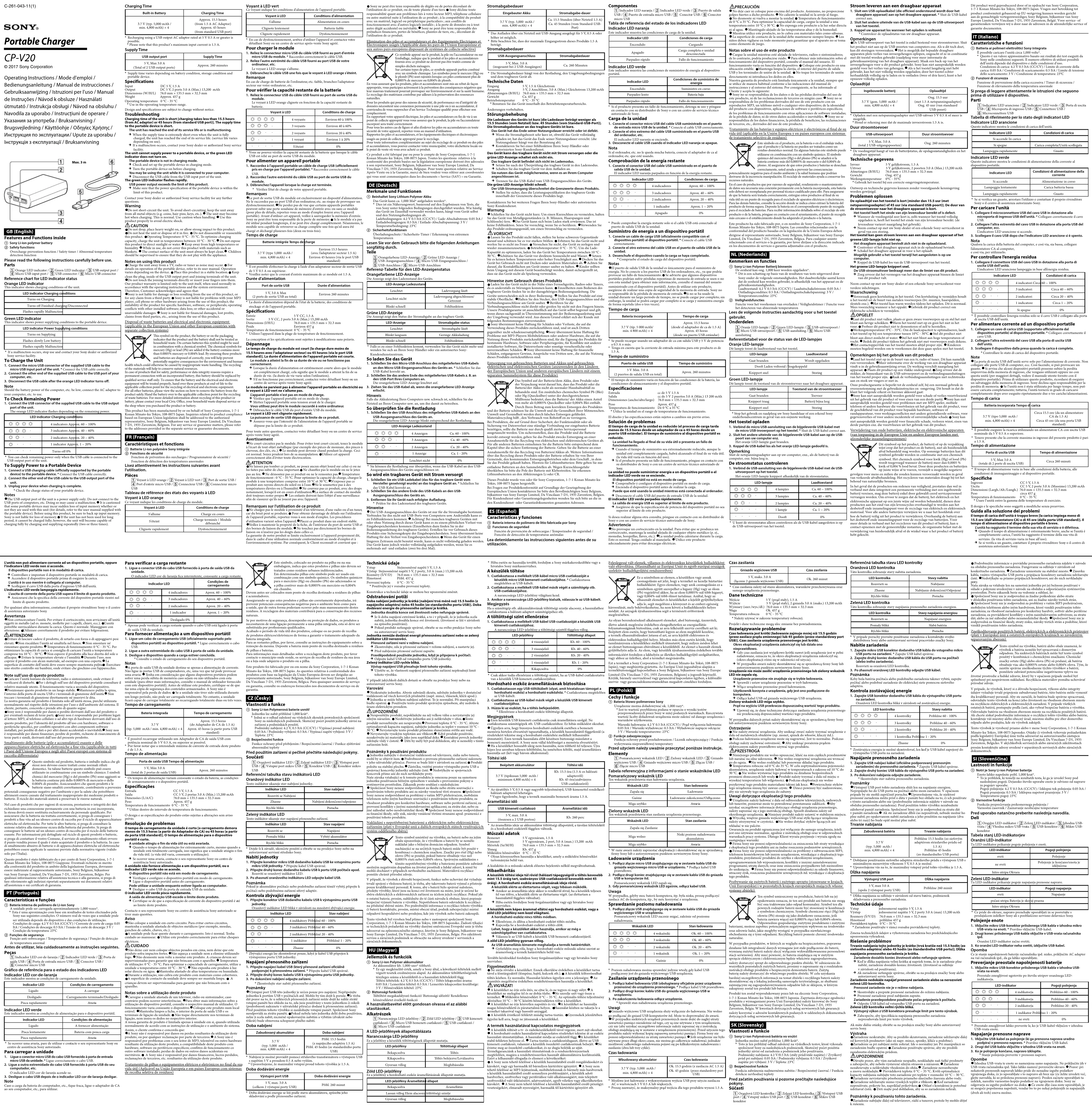 CPV20 - Batterie portable SONY - Notice d'utilisation et mode d'emploi gratuit
