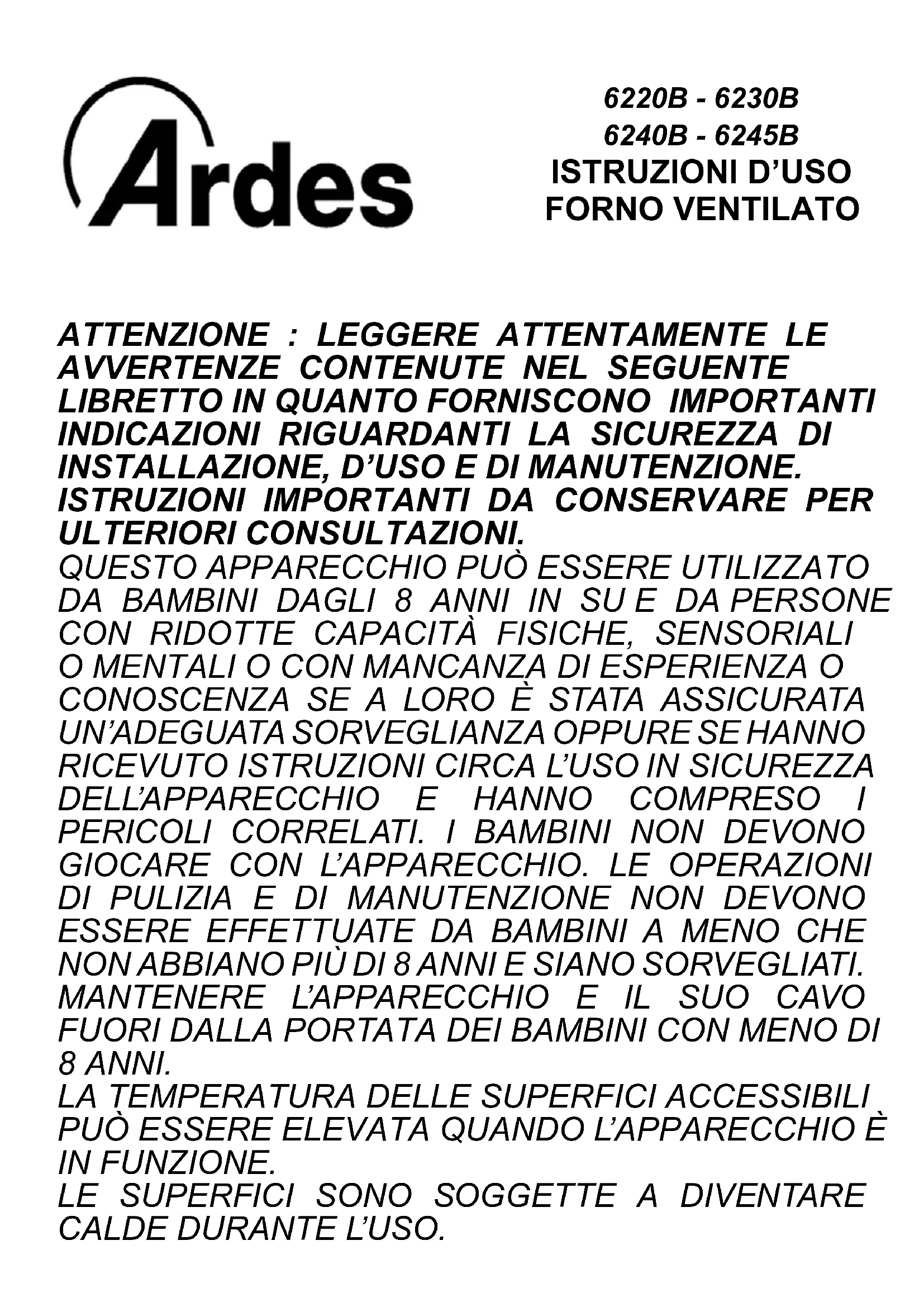 AR6240B - Four ARDES - Notice d'utilisation et mode d'emploi gratuit