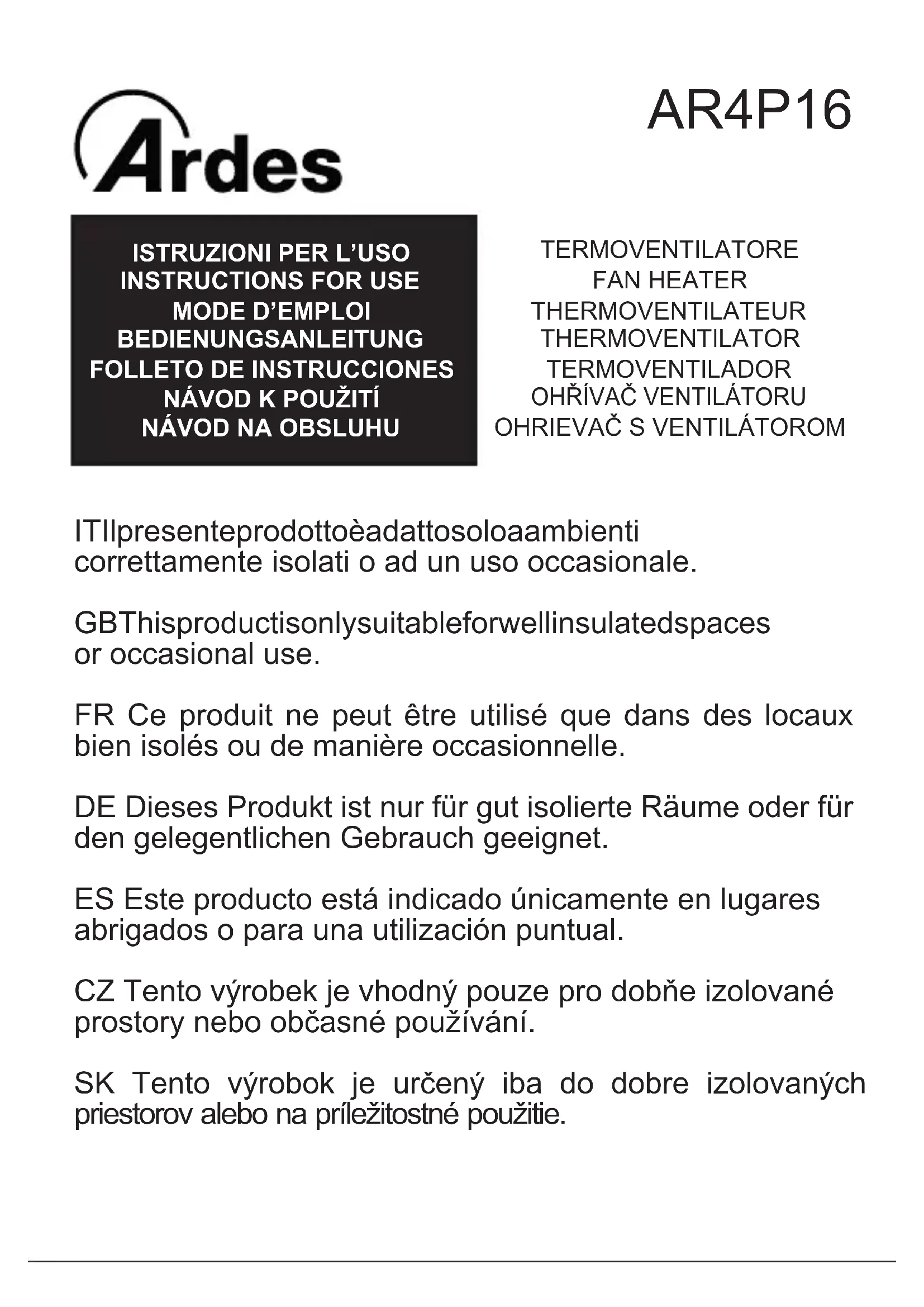 AR4P16 - Chauffage ARDES - Notice d'utilisation et mode d'emploi gratuit
