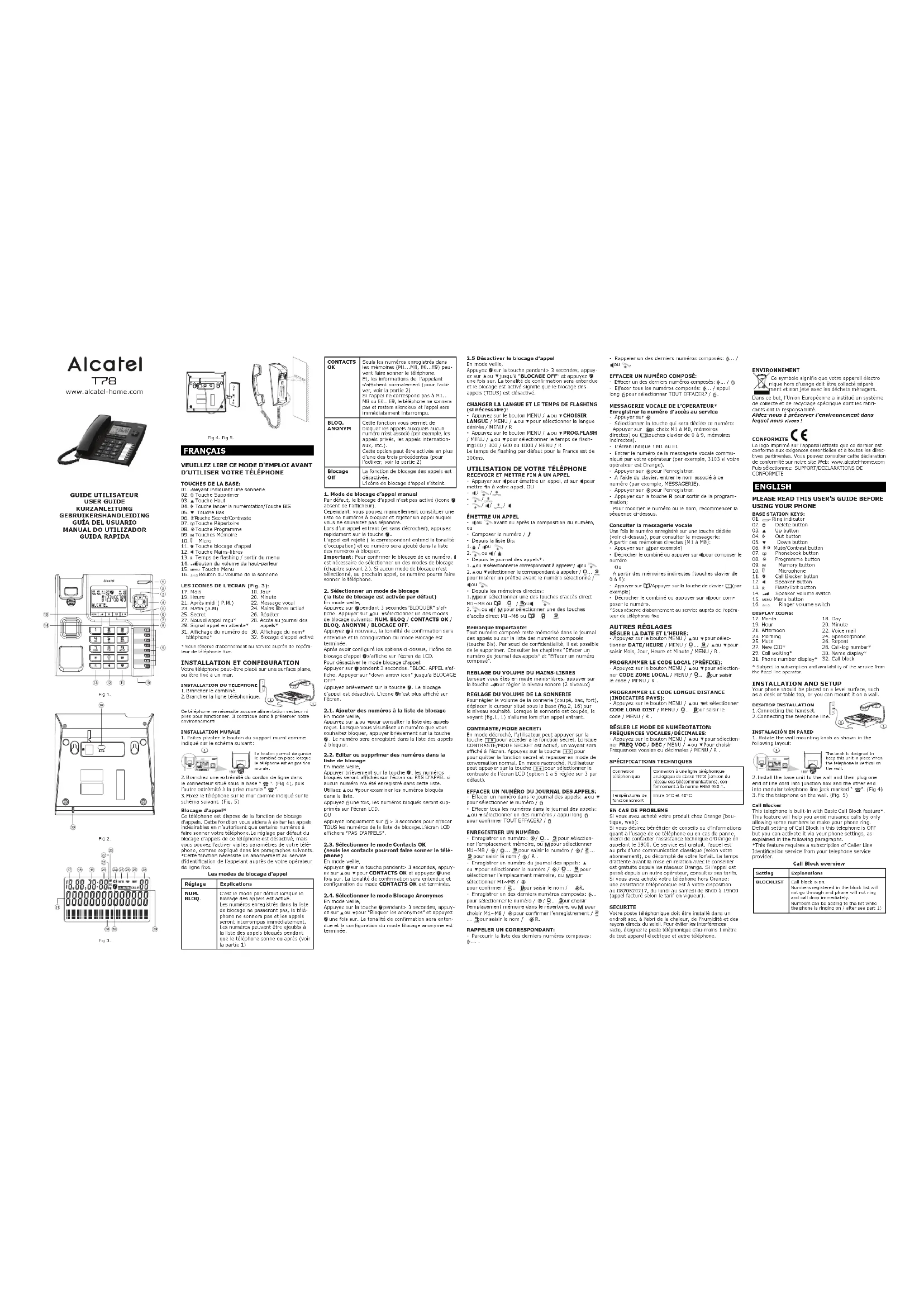 Retrouvez gratuitement la notice de l'appareil T78 ALCATEL au format PDF.