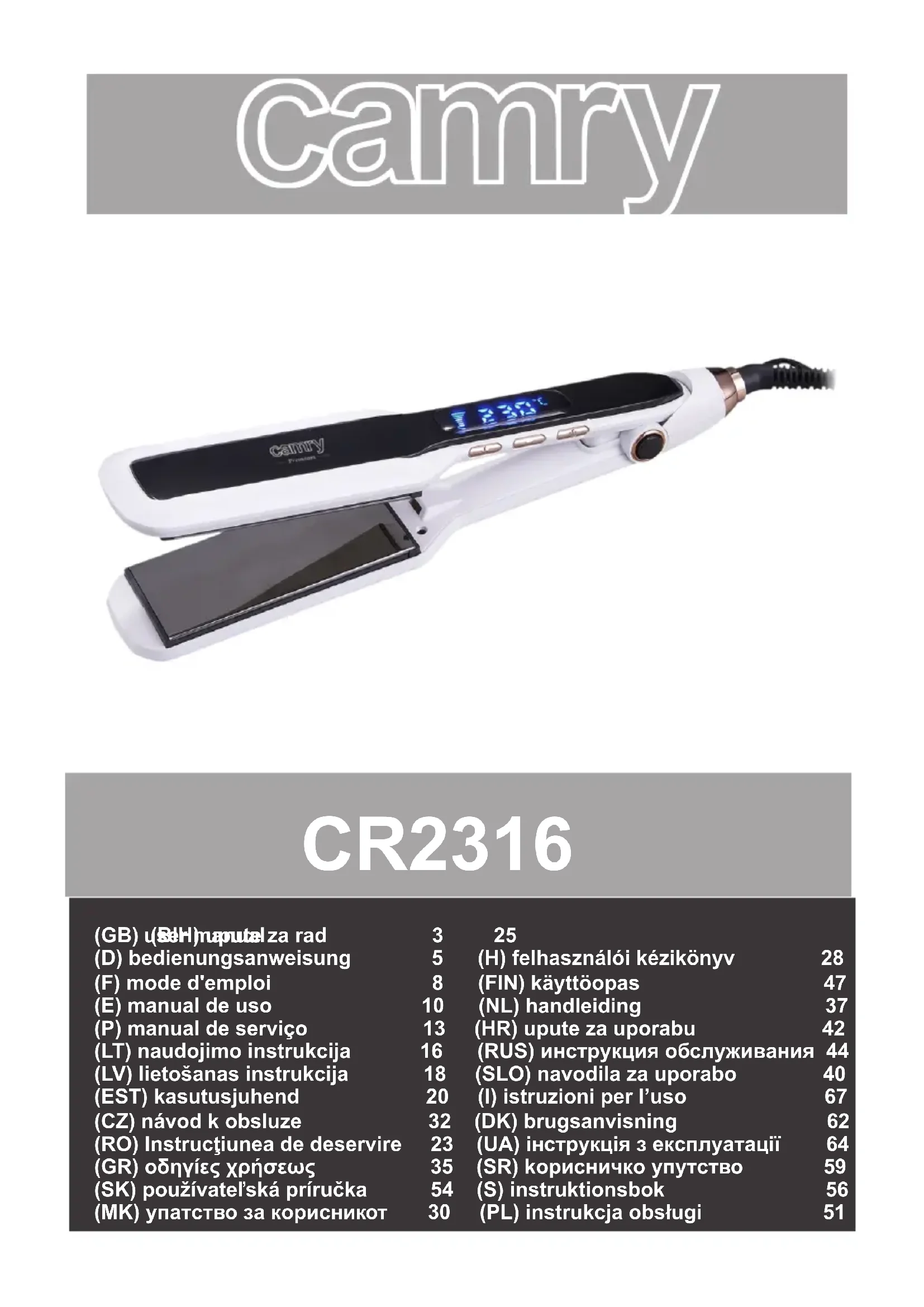 CR 2316 - Lisseur CAMRY - Notice d'utilisation et mode d'emploi gratuit