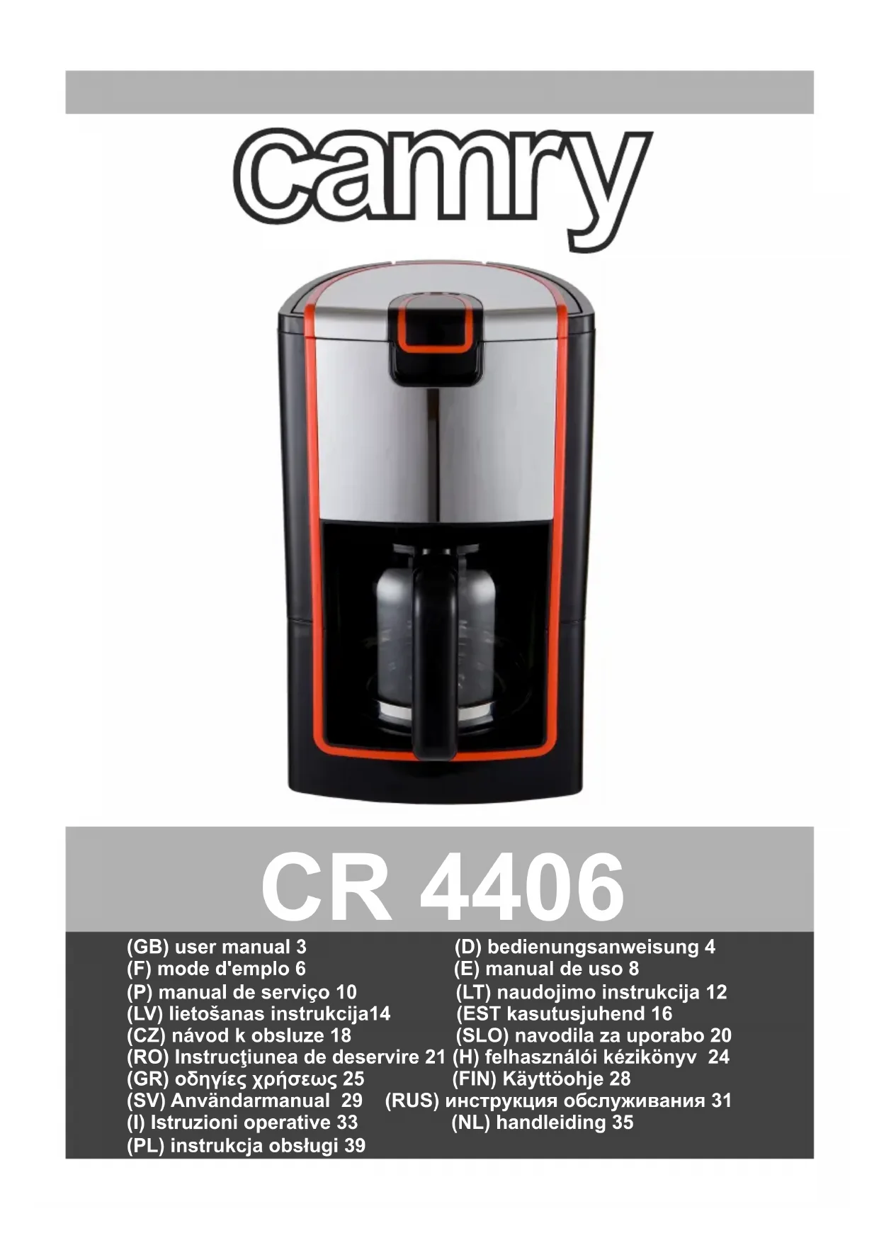 CR 4406 - Machine à café CAMRY - Notice d'utilisation et mode d'emploi gratuit