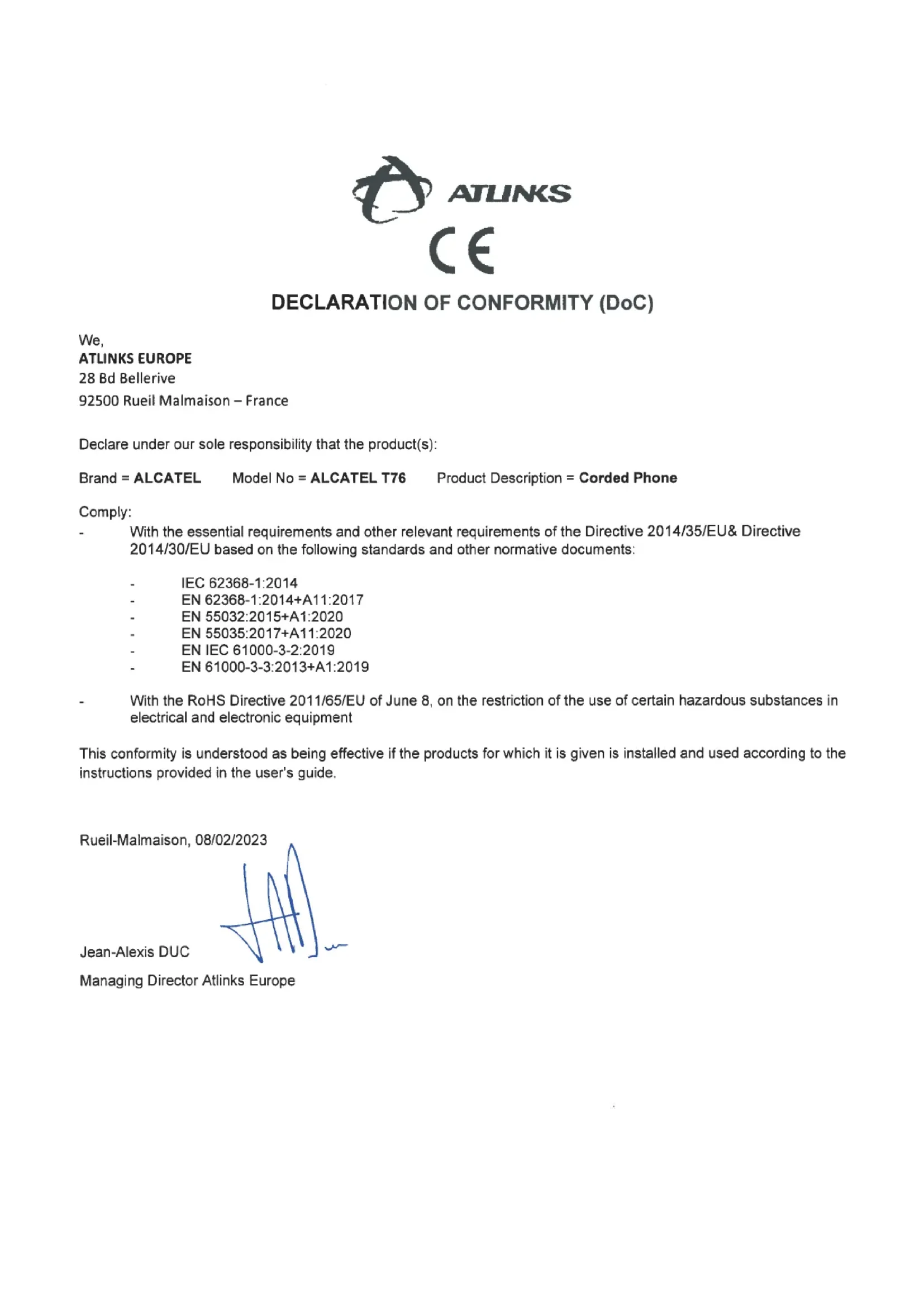 Retrouvez gratuitement la notice de l'appareil T76 ALCATEL au format PDF.