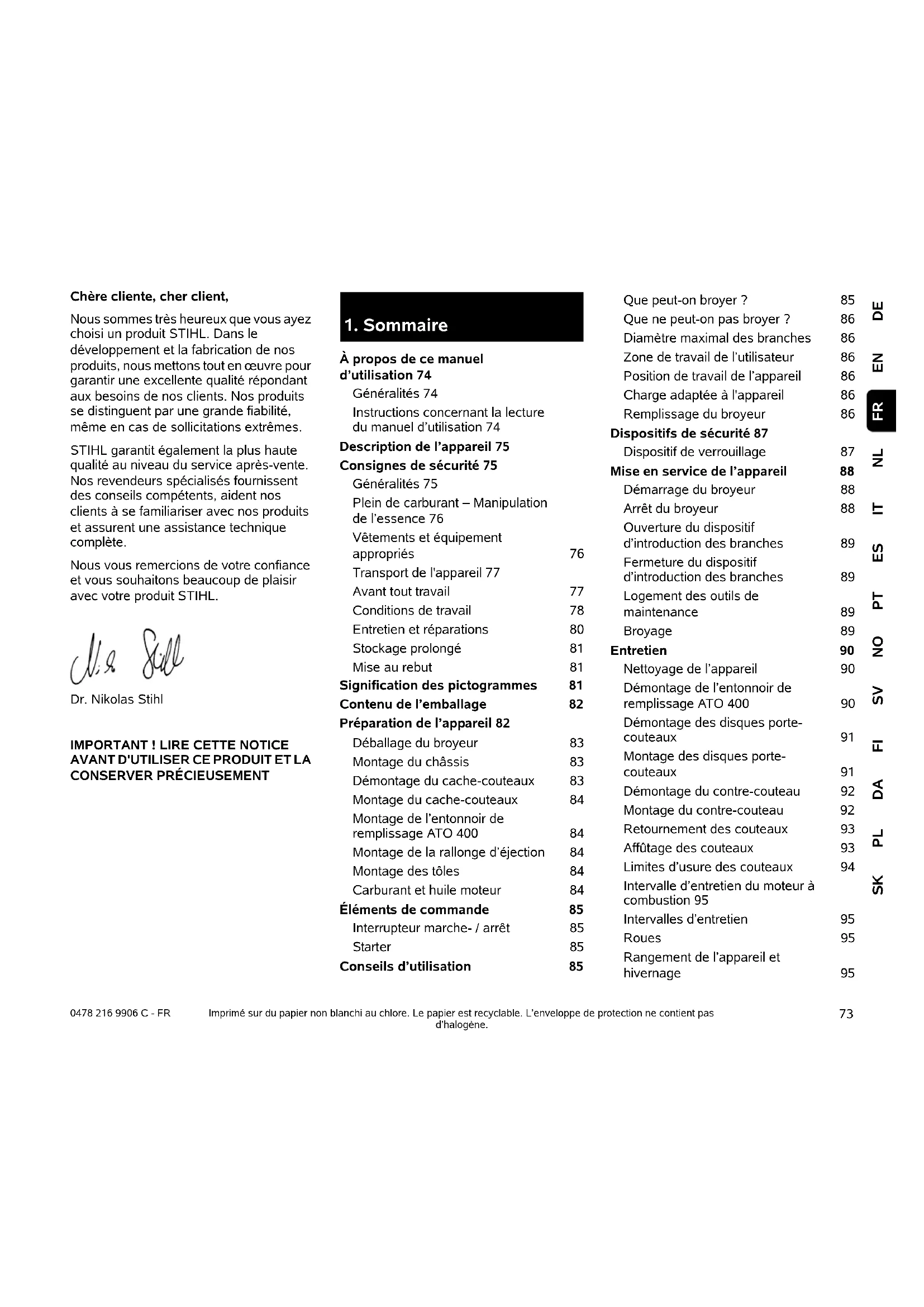Nous vous remercions de votre confiance et vous souhaitons beaucoup de plaisir avec votre produit STIHL.