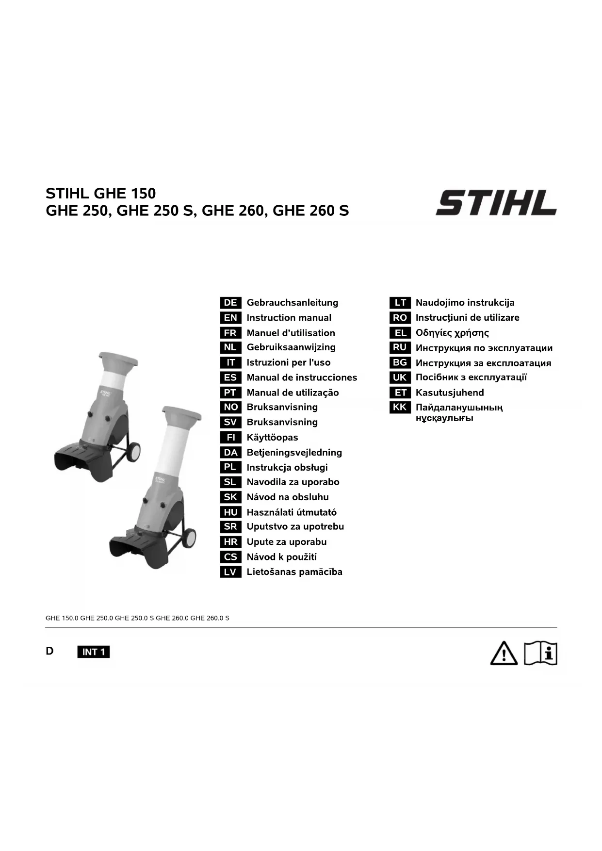 Retrouvez gratuitement la notice de l'appareil GHE 250 S STIHL au format PDF.
