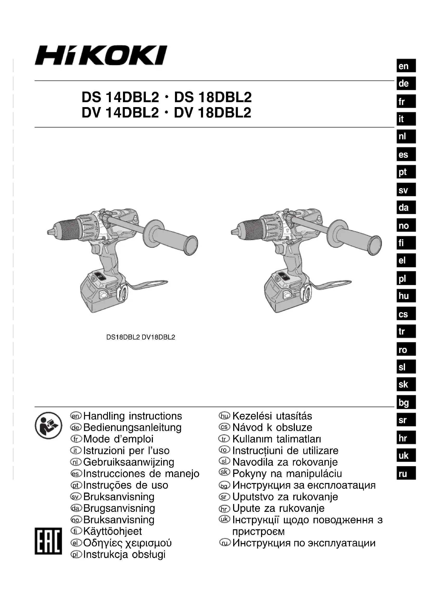 DV 18DBL2 - Perceuse HITACHI - Notice d'utilisation et mode d'emploi gratuit