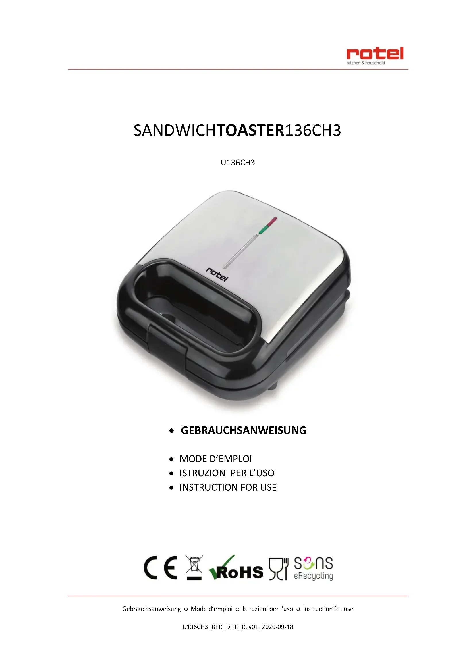 U136CH3 - Pince pour croque monsieur ROTEL - Notice d'utilisation et mode d'emploi gratuit