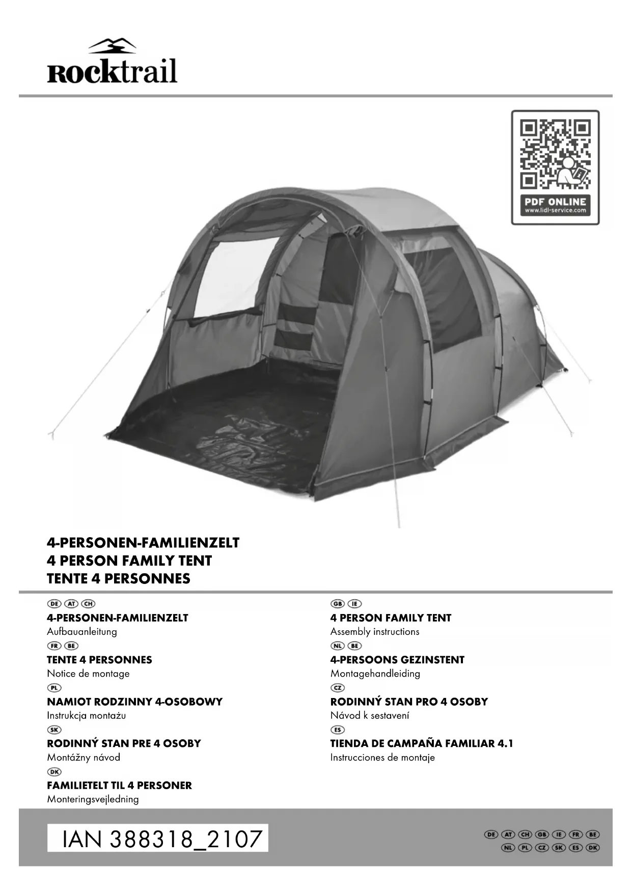 et fixez le tissu de la fenêtre à l’aide des deux scratch. Démontage Remarque : si possible, démontez l’article dans un état propre et sec pour éviter la formation de moisis- sure ou des taches d’humidité. Après un démontage sous la pluie, il est nécessaire de sécher entière- ment l’article avant de le ranger. Nettoyez soigneusement toutes les pièces avant de les ranger.