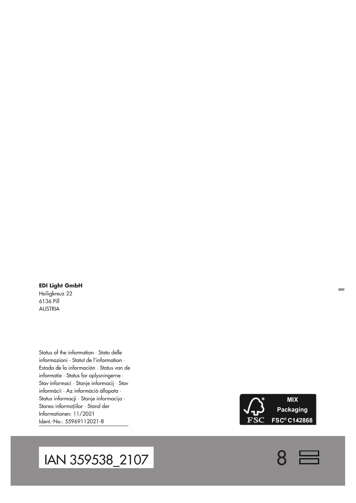PAP Veuillez respecter l‘identification des matériaux d‘emballage pour le tri sélectif, ils sont identifiés avec des abbréviations (a) et des chiffres (b) ayant la signification suivante : 1–7 : plastiques / 20–22 : papiers et cartons / 80–98 : matériaux composite. Le produit et les matériaux d’emballage sont recyclables, mettez-les au rebut séparément pour un meilleur traitement des déchets. Le logo Triman n’est valable qu’en France. Votre mairie ou votre municipalité vous renseigneront sur les possibilités de mise au rebut des produits usagés. Afin de contribuer à la protection de l’environnement, veuillez ne pas jeter votre produit usagé dans les ordures ménagères, mais éliminez-le de manière appropriée. Pour obtenir des renseignements concernant les points de collecte et leurs horaires33FR/BE d’ouverture, vous pouvez contacter votre municipalité. Déclaration de conformité Ce produit est conforme aux exigences des directives européennes et nationales applicables. Les déclarations et documents correspondants sont en possession du fabricant. Ce produit répond aux exigences des lois allemandes concernant la sécurité des produits et des appareils. Dans le cadre de l’amélioration des produits, nous nous réservons le droit d‘apporter des modifications techniques et esthétiques à l‘article ou à ses accessoires. Sous réserve d‘erreurs de frappe et d‘impression. Ce produit contient une source lumineuse de classe d’efficacité énergétique F. Garantie et service après-vente Garantie Nous proposons 3 ans de garantie à compter de la date d‘achat. Nos produits sont conçus selon des méthodes de production répondant aux critères modernes et soumis à un contrôle qualité précis. Nous garantissons l‘état de fonctionnement irréprochable des articles. Pendant la durée de la garantie, nous réparons gratuitement tous les défauts de matériels ou de fabrication. Si des défauts devaient néanmoins être constatés, veuillez faire parvenir l‘article soigneusement emballé au service après-vente dont l‘adresse est indiquée. Sont exclus de la garantie les dommages résultant d‘un maniement inapproprié de l‘article ainsi que ceux découlant de l‘usure naturelle des pièces d‘usure et des matériaux d‘utilisation. Ceux-ci peuvent être commandés au numéro d‘appel indiqué et sont payants. Les réparations qui ne sont pas couvertes par la garantie (par ex. ampoules) peuvent être exécutées par le service dont l‘adresse est indiquée contre facturation individuelle au prix coûtant. L‘article sera réparé par le service après-vente mentionné. Ce n‘est qu‘en expédiant directement l‘article à cette adresse que vous serez certain de voir votre objet réparé et réexpédié dans les temps. Si vous souhaitez obtenir plus d‘informations sur le produit, commander des accessoires ou si vous avez des questions concernant le déroulement des réparations par notre service, veuillez appeler notre service client au numéro indiqué. Pour toute demande, veuillez indiquer la référence d‘article (voir «Caractéristiques techniques»). IAN 359538_2107 Veuillez conserver le ticket de caisse et la référence de l‘article (par ex. IAN 123456_7890) à titre de preuve d‘achat pour toute demande. Adresse du service après-vente France