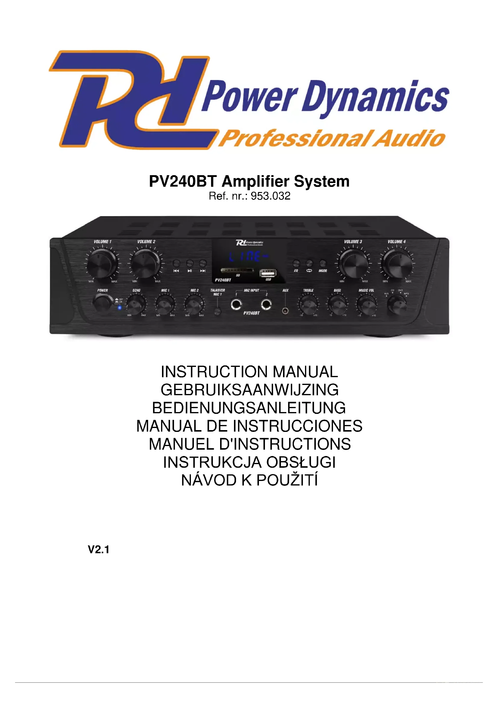 Retrouvez gratuitement la notice de l'appareil PV240BT Power Dynamics au format PDF.