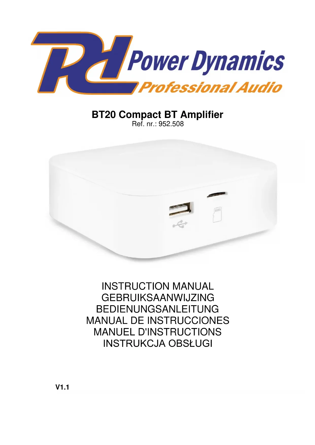 Retrouvez gratuitement la notice de l'appareil BT20 Power Dynamics au format PDF.