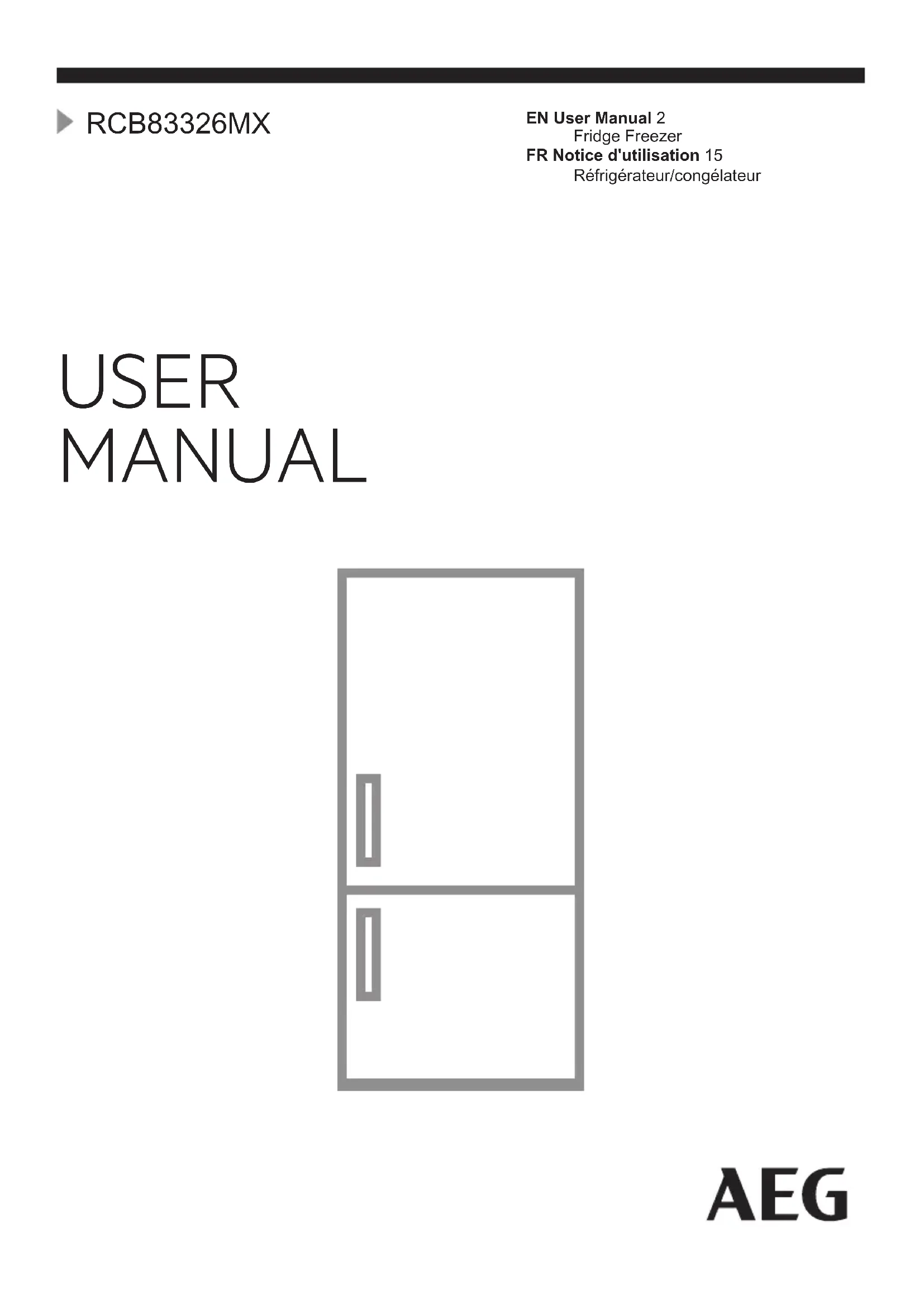 USER MANUAL EN User Manual 2 Fridge Freezer FR Notice d'utilisation 15 Réfrigérateur/congélateur RCB83326MXCONTENTS