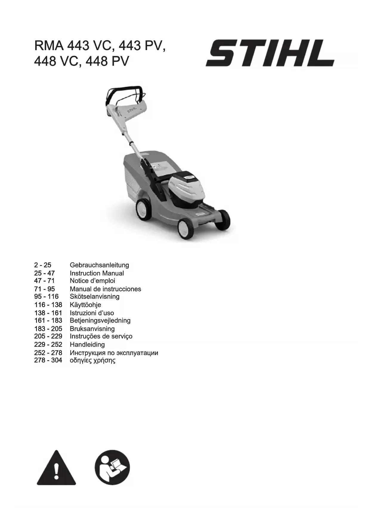 RMA 448 PV - Tondeuse à gazon STIHL - Notice d'utilisation et mode d'emploi gratuit