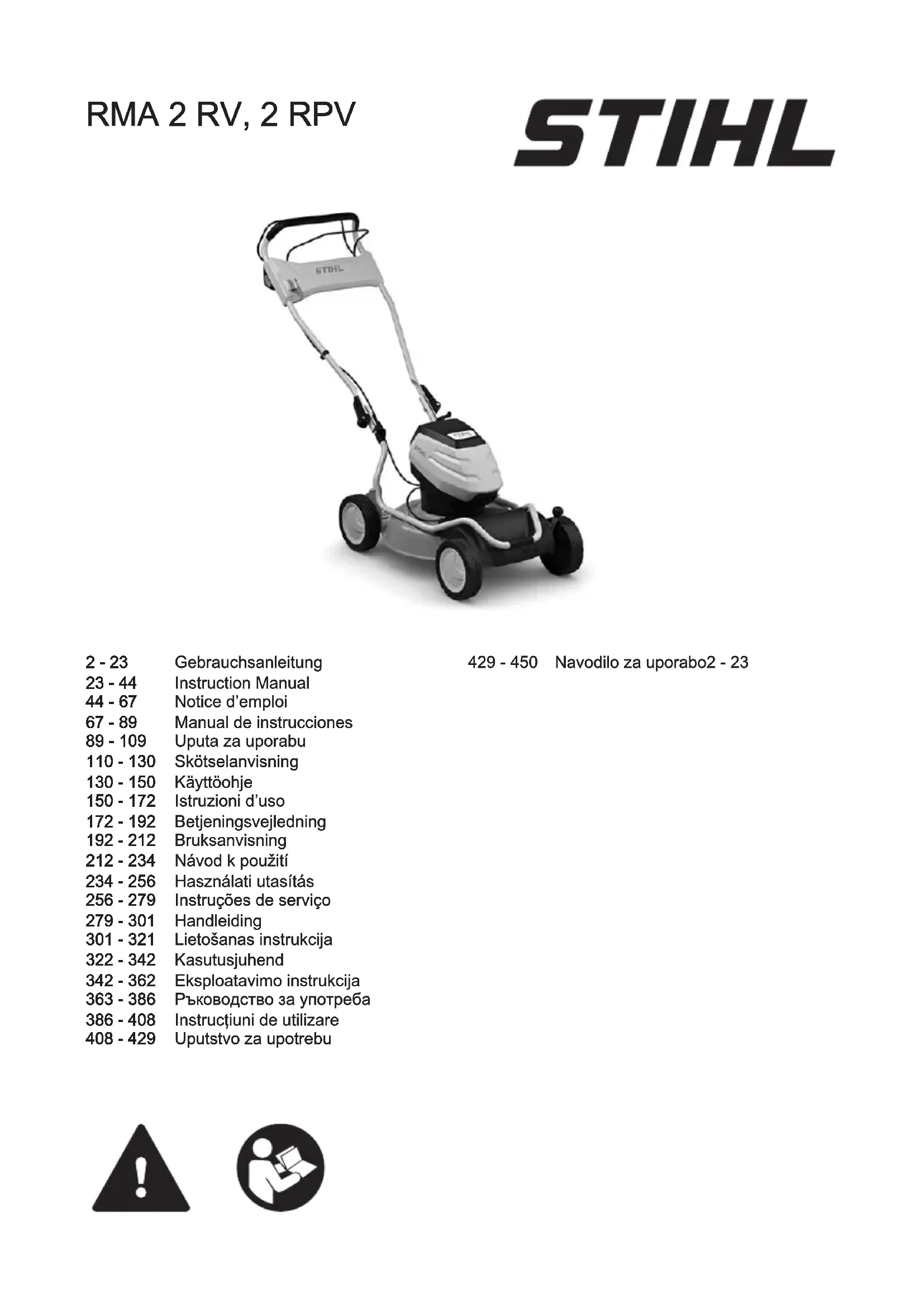 Retrouvez gratuitement la notice de l'appareil RMA 2 RV STIHL au format PDF.