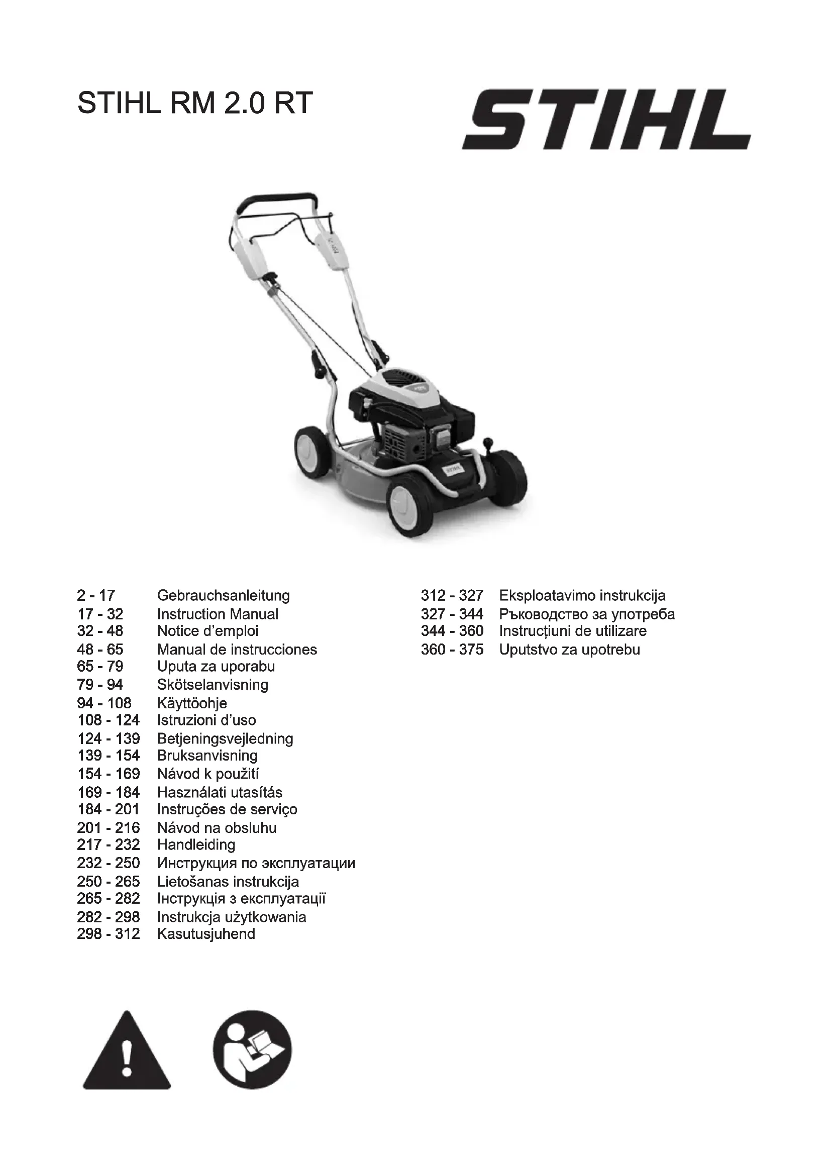 Retrouvez gratuitement la notice de l'appareil RM 2 RT STIHL au format PDF.