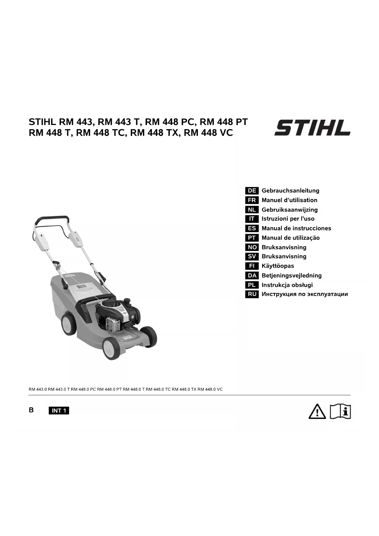 Retrouvez gratuitement la notice de l'appareil RM 443 T STIHL au format PDF.