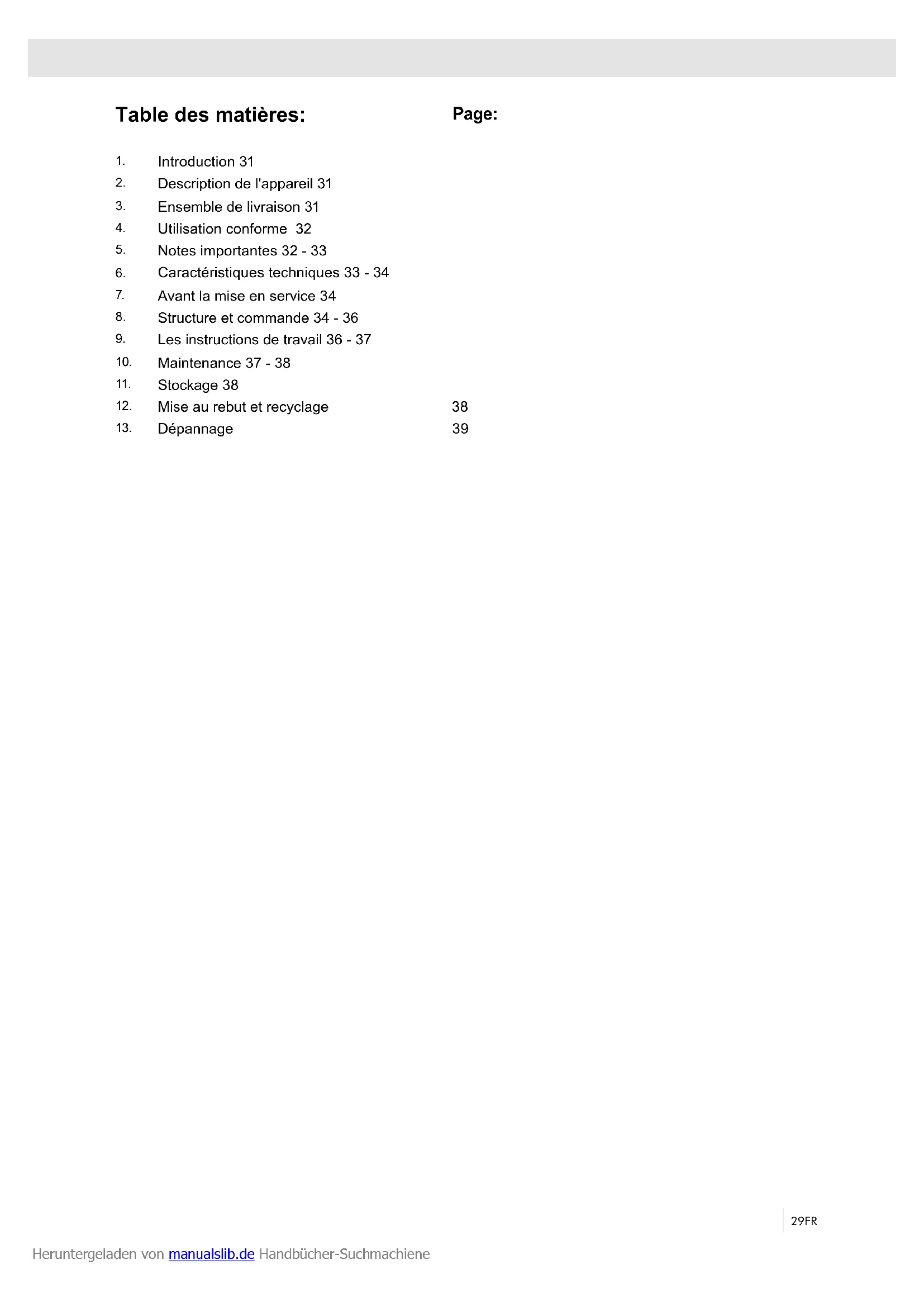 - N‘utilisez jamais l‘appareil avec des gardes ou des Heruntergeladen von manualslib.de Handbücher-Suchmachiene33FR protections défectueux, ou sans dispositif de sécu- rité.