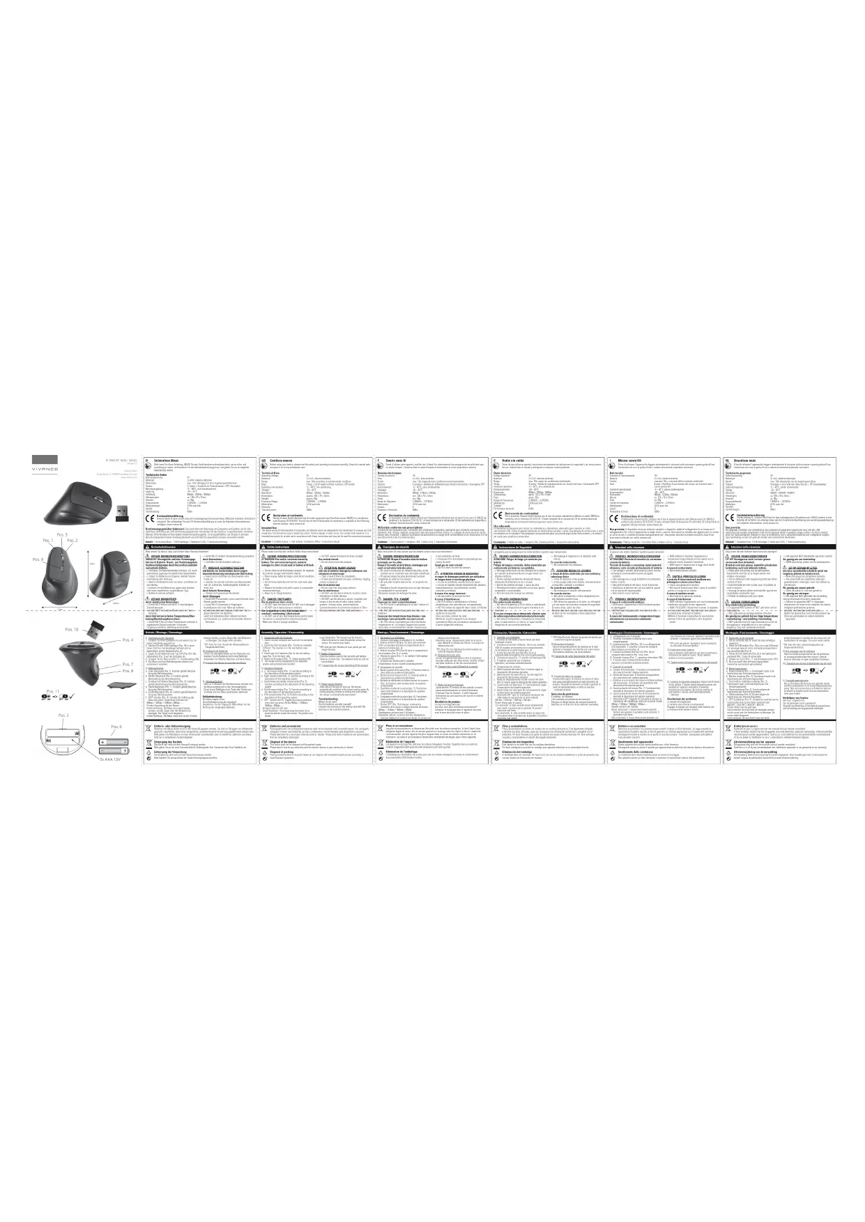 Souris sans fil Avant d‘utiliser votre appareil, veuillez tout d‘abord lire attentivement les consignes de sécurité ainsi que ce mode d‘emploi. Conservez bien le mode d‘emploi et transmettez-le à tout propriétaire ultérieur. Données techniques Tension de service : 3VPiles : 2x AAA, piles alcalines Portée : max. 10m dépendant des conditions environnementales Touches : 4 touches + Molette de défilement avec fonction de touche + Interrupteur DPI Environnement : -0 – 40°C, sans condensationStockage : -20 – 45°CRésolution: 800dpi, 1200dpi, 1600dpiDimensions : env. 126 x 78 x 72mmPoids : env. 90gBande de fréquence : 2,405GHz – 2,470GHzModulation: GFSK auto linkCanaux : 8Puissance d'émission : 0dBm Déclaration de conformité Le soussigné, Vivanco GmbH, déclare que l'équipement radioélectrique du type [Souris sans fil 39632] est conforme à la directive 2014/53/UE. Le texte complet de la déclaration UE de conformité est disponible à l'adresse internet suivante: www.vivanco.de. Utilisation conforme aux prescriptions Le dispositif est nécessaire pour l'utilisation des ordinateurs et appareils, appropriés pour connecter une souris avec connexion USB. Utilisez l‘appareil uniquement dans des locaux fermés et secs. Il y a danger de court-circuit en cas de contact avec l‘humidité. L‘appareil est destiné exclusivement à un usage privé, conformément à ces instructions et il ne peut être utilisé à des fins commerciales. Contenu : 1 Souris sans fil, 1 récepteur USB, 2 piles (AAA), 1 instruction d'utilisation Consignes de sécuritéNous vous prions de vous assurer que les enfants suivent aussi ces instructions ! Montage / Fonctionnement / Démontage: Piles et accumulateurs Les piles et accumulateurs ne doivent pas être jetés avec les ordures ménagères. Ils font l'objet d'une obligation légale de retour, afin de pouvoir garantir un recyclage selon les règles et dans le respect de l'environnement. Veuillez apporter les piles usagées dans un centre de collecte communale ou un commerce. Les piles et accumulateurs doivent être entièrement déchargés avant d'être rapportés. Elimination de l'appareil Cet appareil ne doit pas être jeté avec les ordures ménagères. Veuillez l'apporter dans un centre de collecte d'appareils électriques de votre commune ou de votre quartier. Elimination de l'emballage L'emballage est réutilisable. Ne le jetez pas avec les ordures ménagères et traitez-le conformément aux prescriptions d'élimination locales.