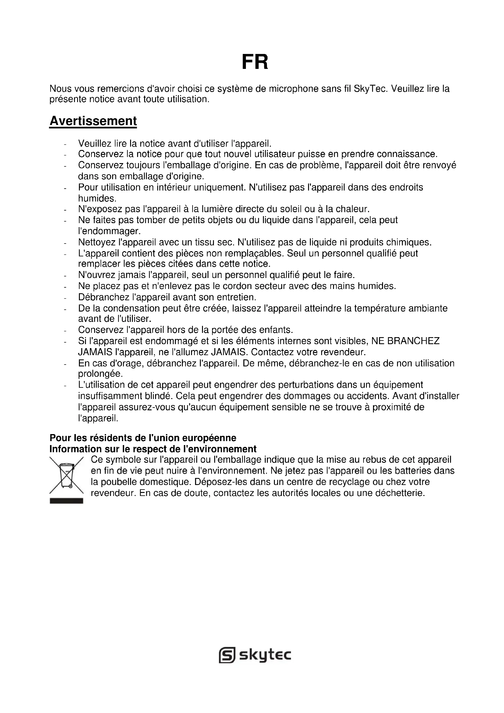 MODE D'EMPLOI STWM722C Skytec