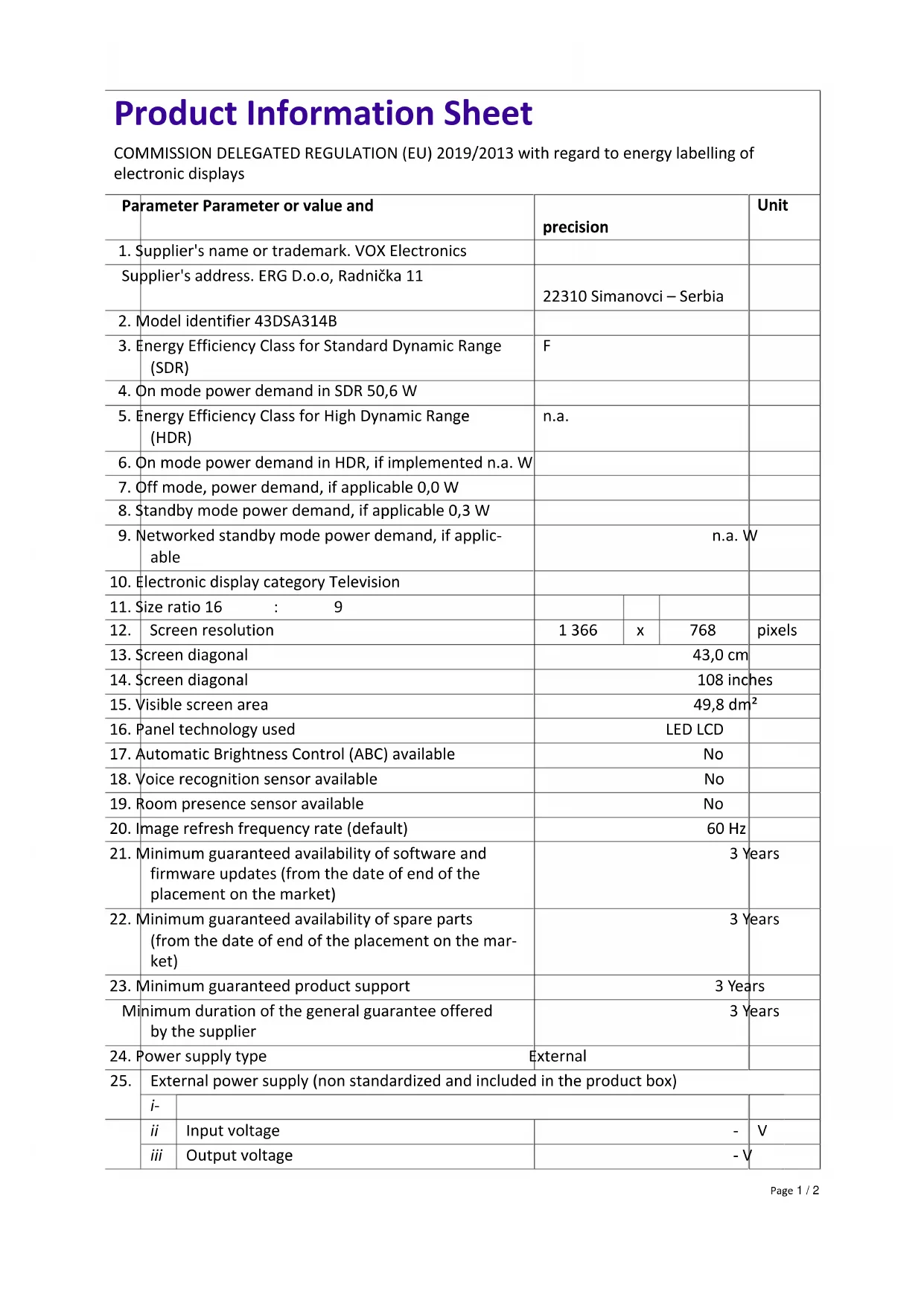 Téléchargez la notice de votre Téléviseur au format PDF gratuitement ! Retrouvez votre notice DSA314 - VOX et reprennez votre appareil électronique en main. Sur cette page sont publiés tous les documents nécessaires à l'utilisation de votre appareil DSA314 de la marque VOX.
