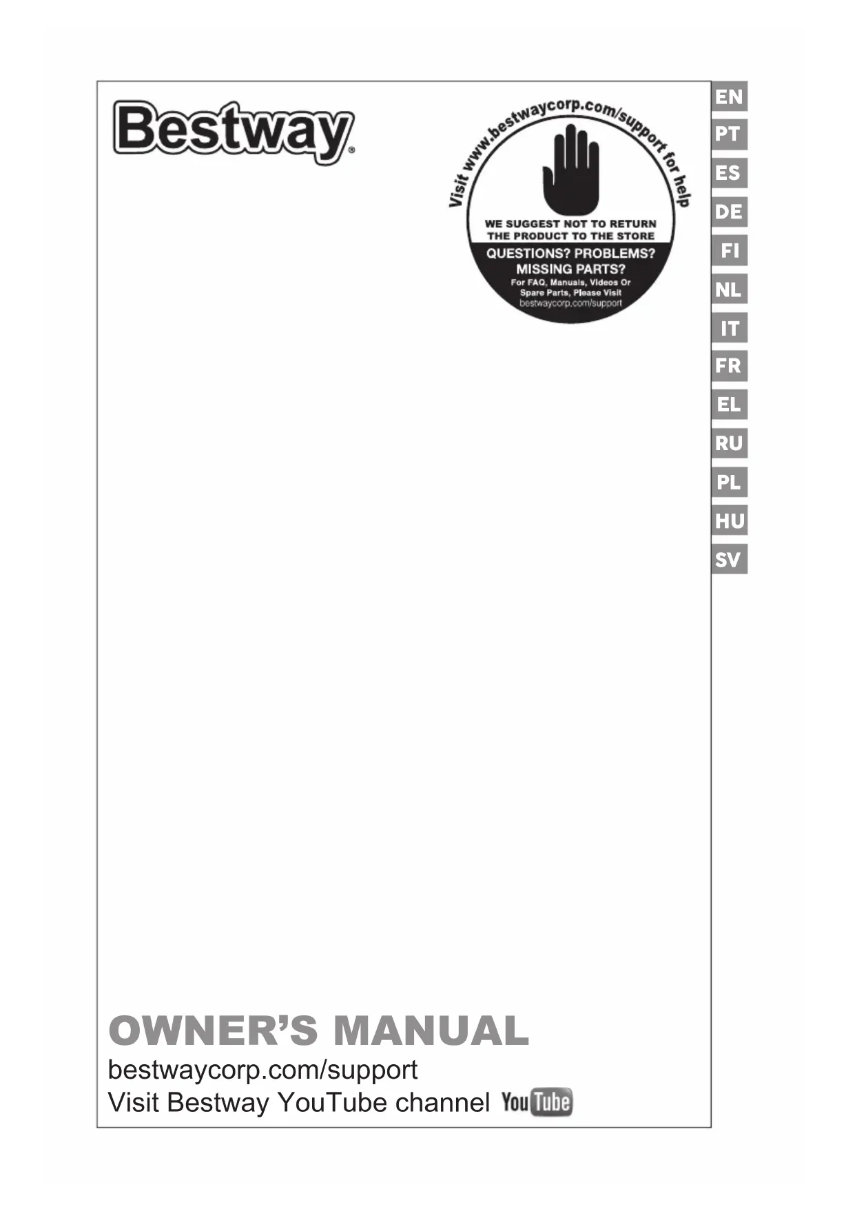 NOUS SUGGÉRONS DE NE PASRAMENER LE PRODUIT AU MAGASINDES QUESTIONS ? DES PROBLÈMES ?DES PIÈCES MANQUANTES ?Pour les FAQ, les notices, les vidéos oules pièces détachées, veuillez visiterbestwaycorp.com/support