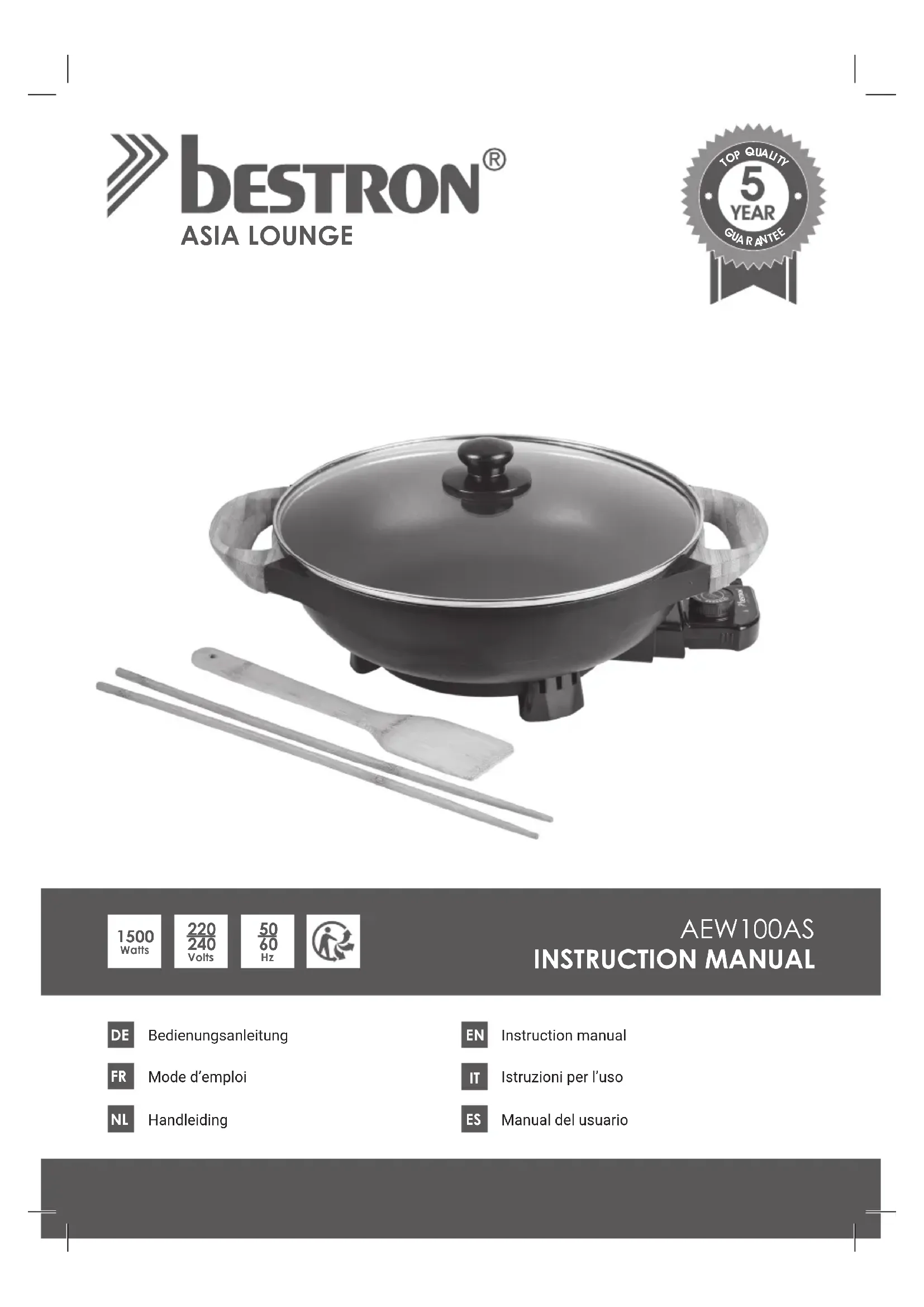Asia Lounge AEW100AS - Appareil à fondue, raclette et wok BESTRON - Notice d'utilisation et mode d'emploi gratuit