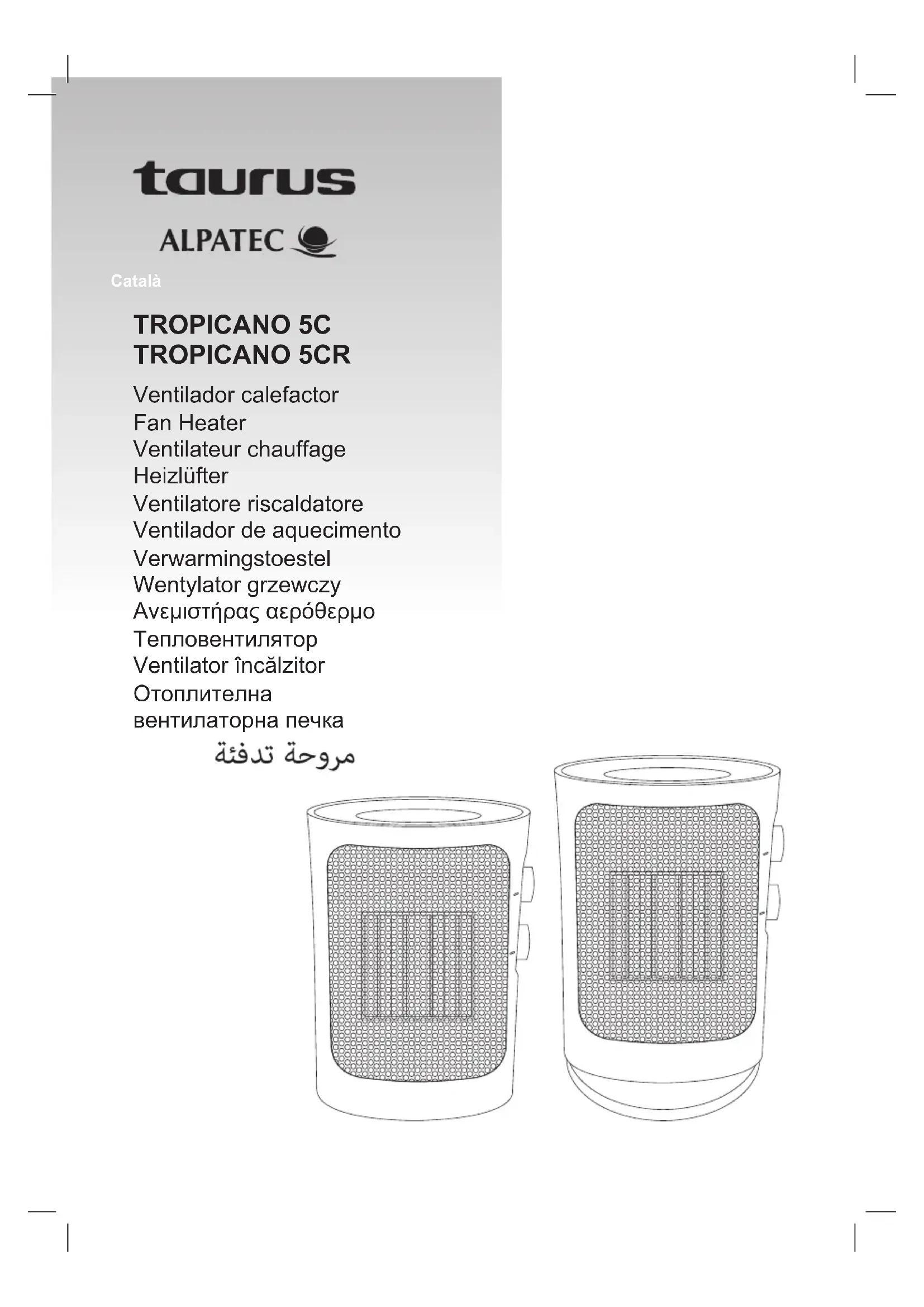 température de la pièce Non Contrôle à deux ou plusieurs paliers manuels, pas de contrôle de la température de la pièce Non Contrôle de la température de la pièce avec thermostat mécanique Oui Contrôle électronique de la température de la pièce Non Contrôle électronique de la température de la pièce et program- mateur journalier Non Contrôle électronique de la température de la pièce et program- mateur hebdomadaire Non Autres options de contrôle Contrôle de la température de la pièce, avec détecteur de présence Non Contrôle de la température de la pièce, avec détecteur de fenêtre ouverte Non Option contrôle à distance Non Contrôle adaptatif de l'activation Non Limitation de la durée d'activation Non Capteur à globe noir Non Coordonnées de contact "ELECTRODOMÉSTICOS TAURUS, S.L. Avda. Barcelona S/N 25790 Oliana, Lleida, Spain”Deutsch Heizlüfter Tropicano 5C / Tropicano 5CR Sehr geehrte Kunden, Wir danken Ihnen für Ihre Entscheidung, ein TAURUS Gerät zu kaufen. Technologie, Design und Funktionalität dieses Gerätes, in Kombination mit der Erfüllung der strengsten Qualitätsnormen, werden Ihnen lange Zeit viel Freude bereiten. BESCHREIBUNG A Funktionsund Gebläseschalter B Temperatur-Drehschalter C Transportgriff Lesen Sie die Gebrauchsanweisung sorgfältig durch, bevor Sie das Gerät einschalten, und bewahren Sie diese zum Nachschlagen zu einem späteren Zeitpunkt auf. Die Nichtbeachtung dieser Gebrauchsanweisungen kann Unfälle zur Folge haben. SICHERHEITSEMPFEHLUN-