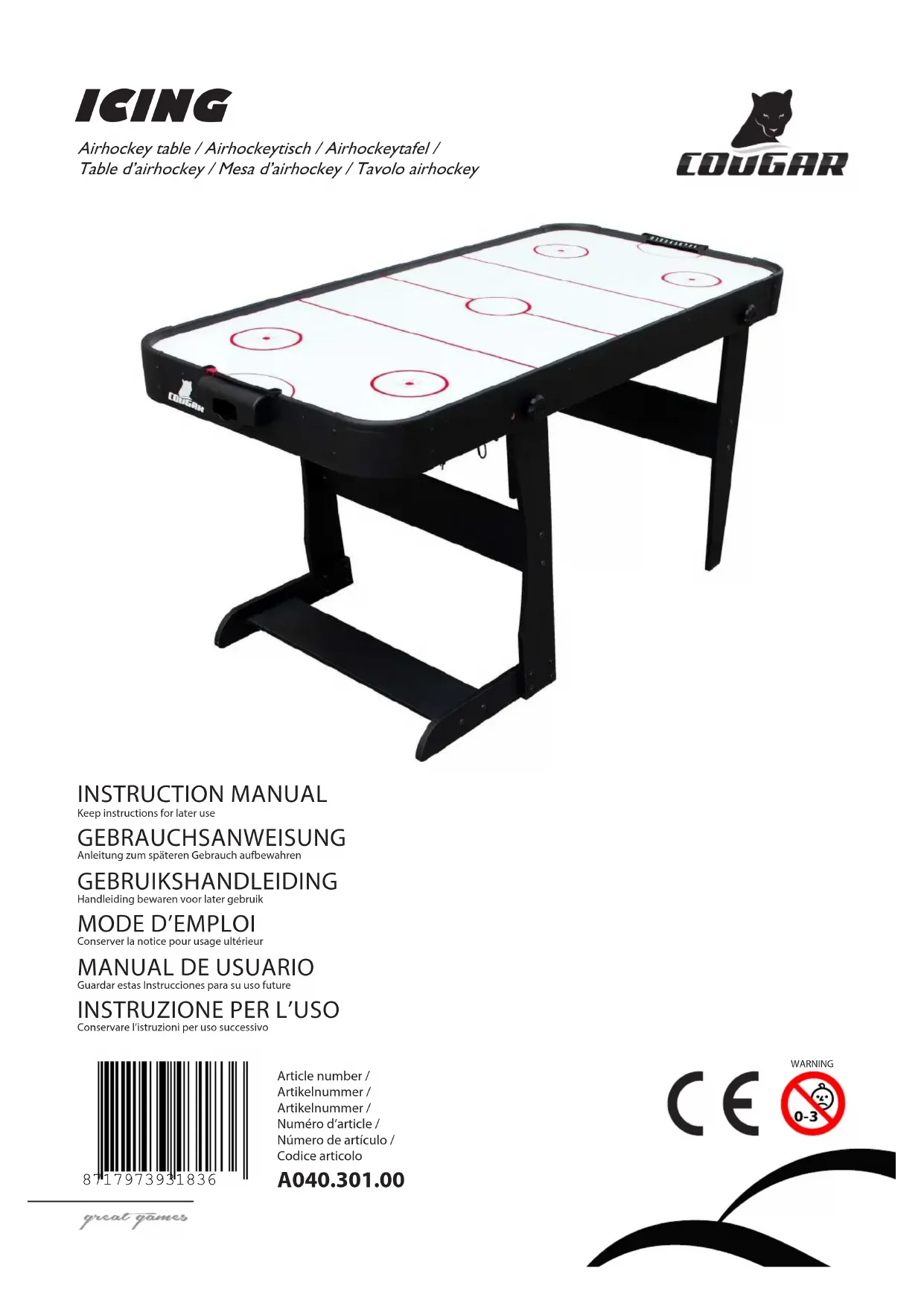 Icing - Table de jeu Cougar - Notice d'utilisation et mode d'emploi gratuit