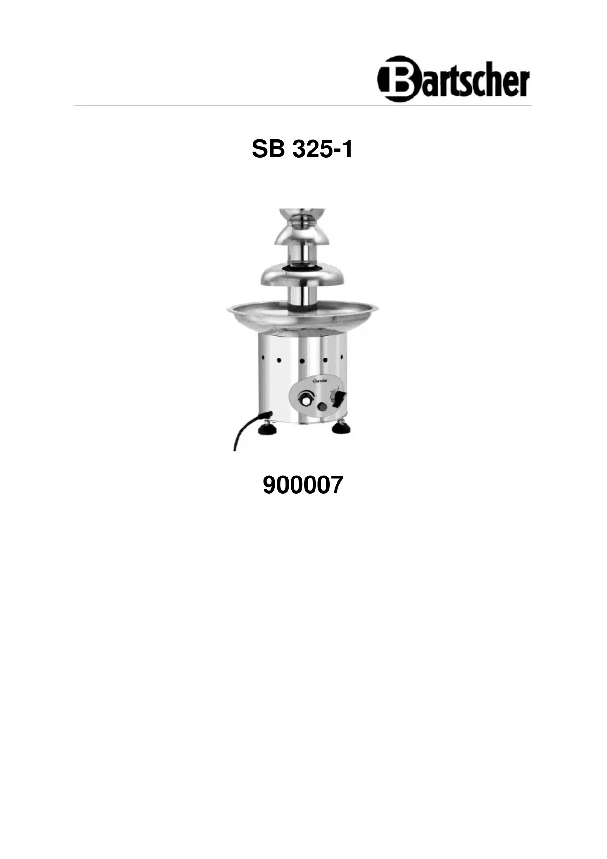 SB 3251 - Fontaine à chocolat BARTSCHER - Notice d'utilisation et mode d'emploi gratuit