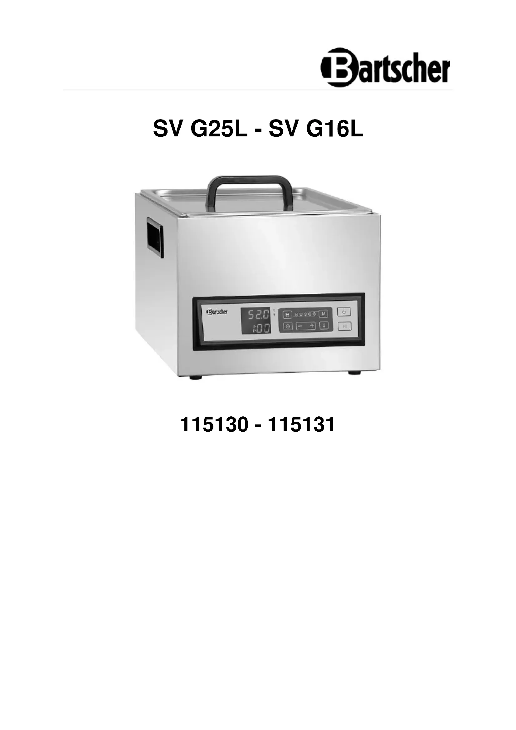 Retrouvez gratuitement la notice de l'appareil SV G16L BARTSCHER au format PDF.