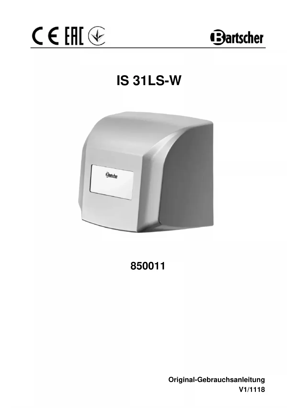 IS 31LSW - Sèche-main BARTSCHER - Notice d'utilisation et mode d'emploi gratuit