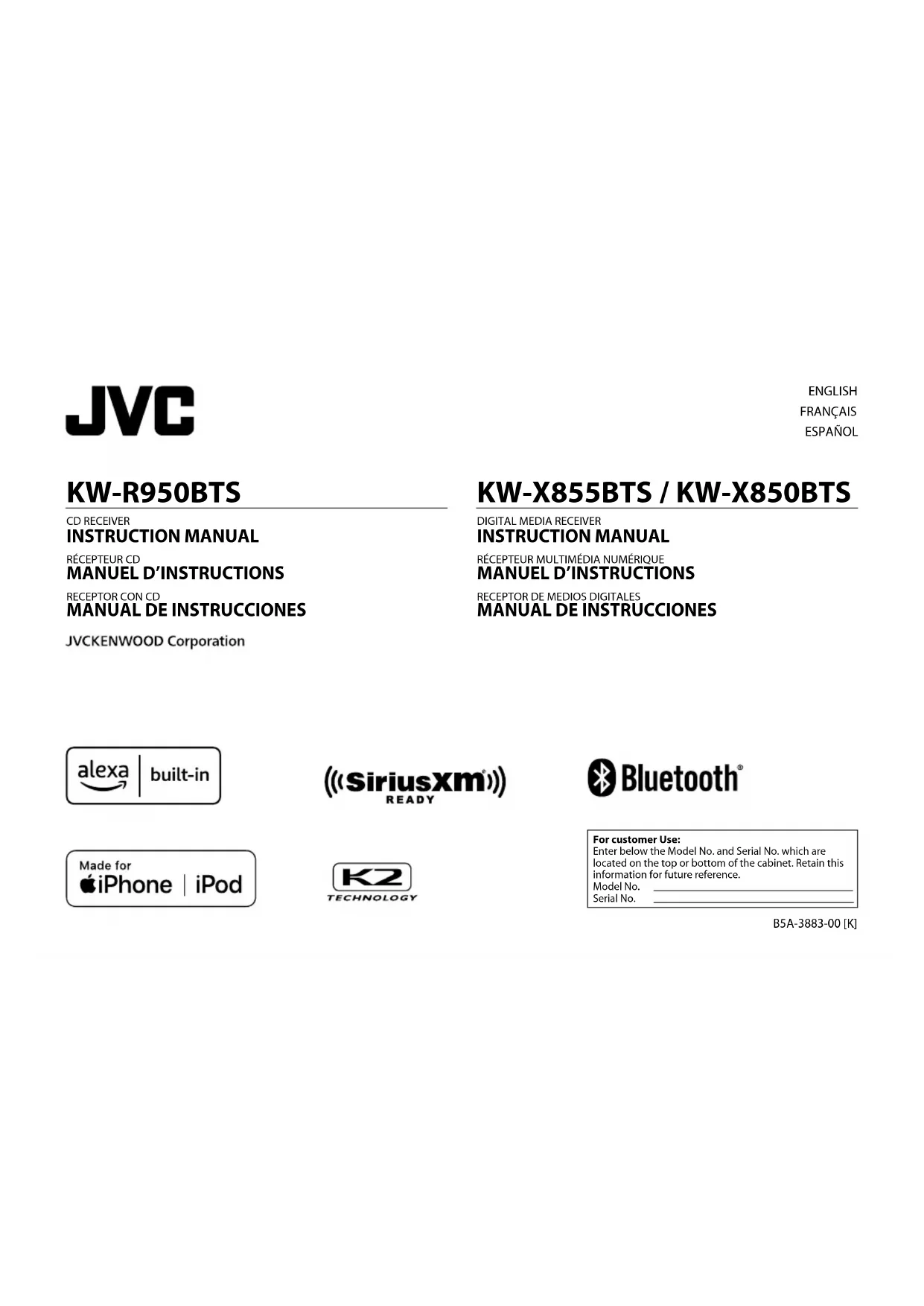 KWX850BT - Recepteur JVC - Notice d'utilisation et mode d'emploi gratuit