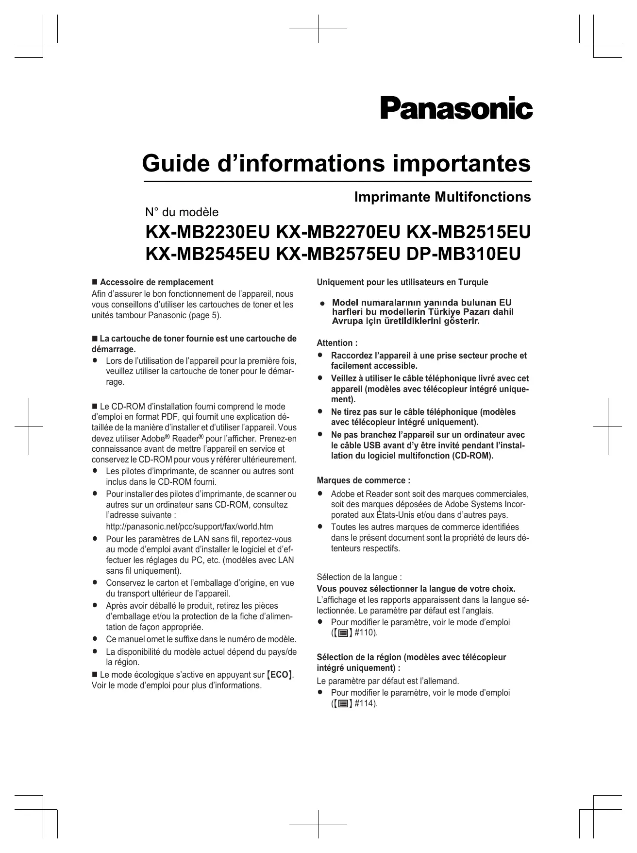 Pour les modèles KX-MB2515/KX-MB2545/KX-MB2575
