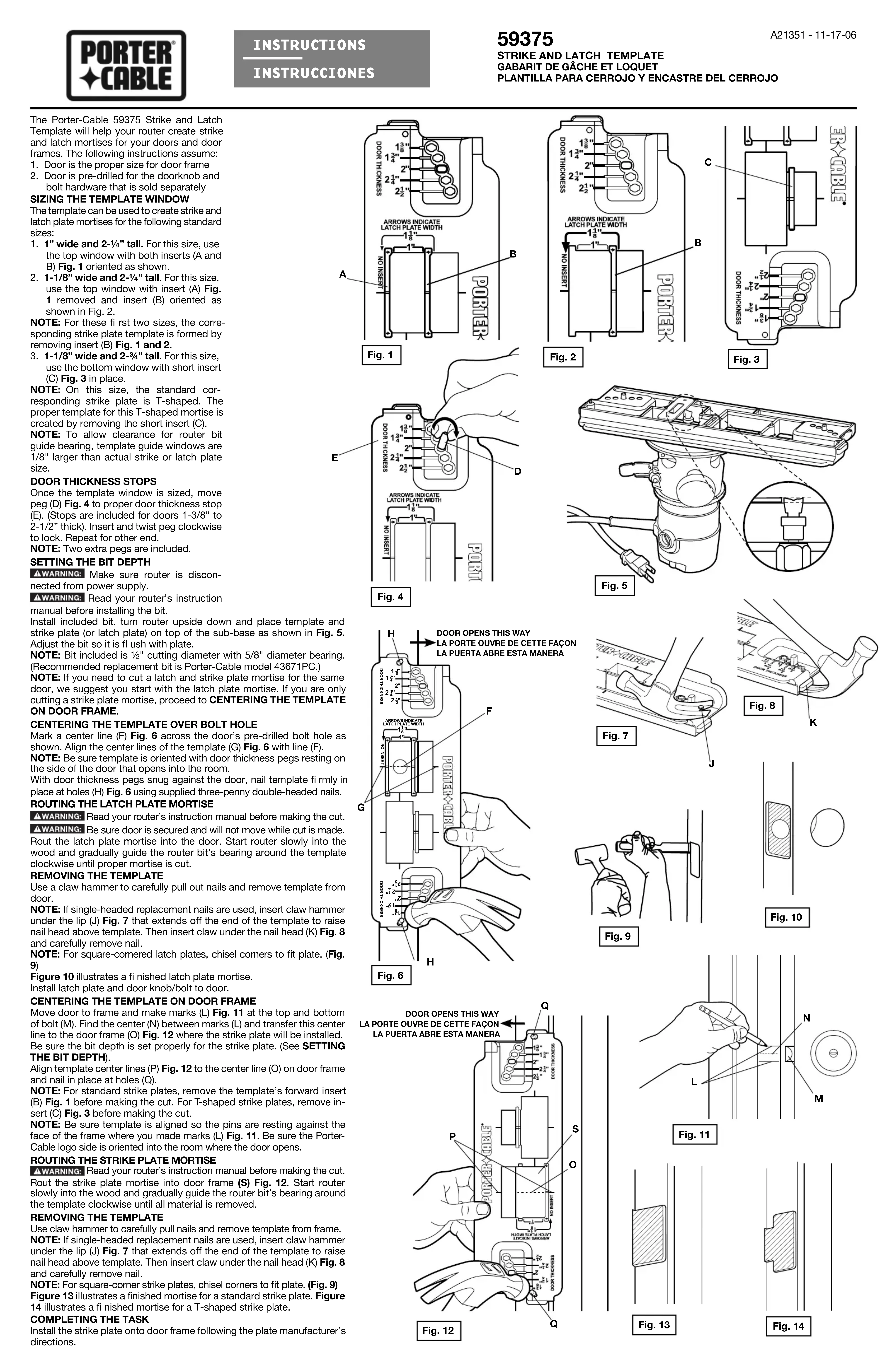 Le gabarit de gâche et loquet, modèle 59375, de Porter-Cable permettra à votre défonceuse de réaliser des mortaises de gâche/loquet pour vos portes et cadres de porte. On presume dans les directives suivantes que :
