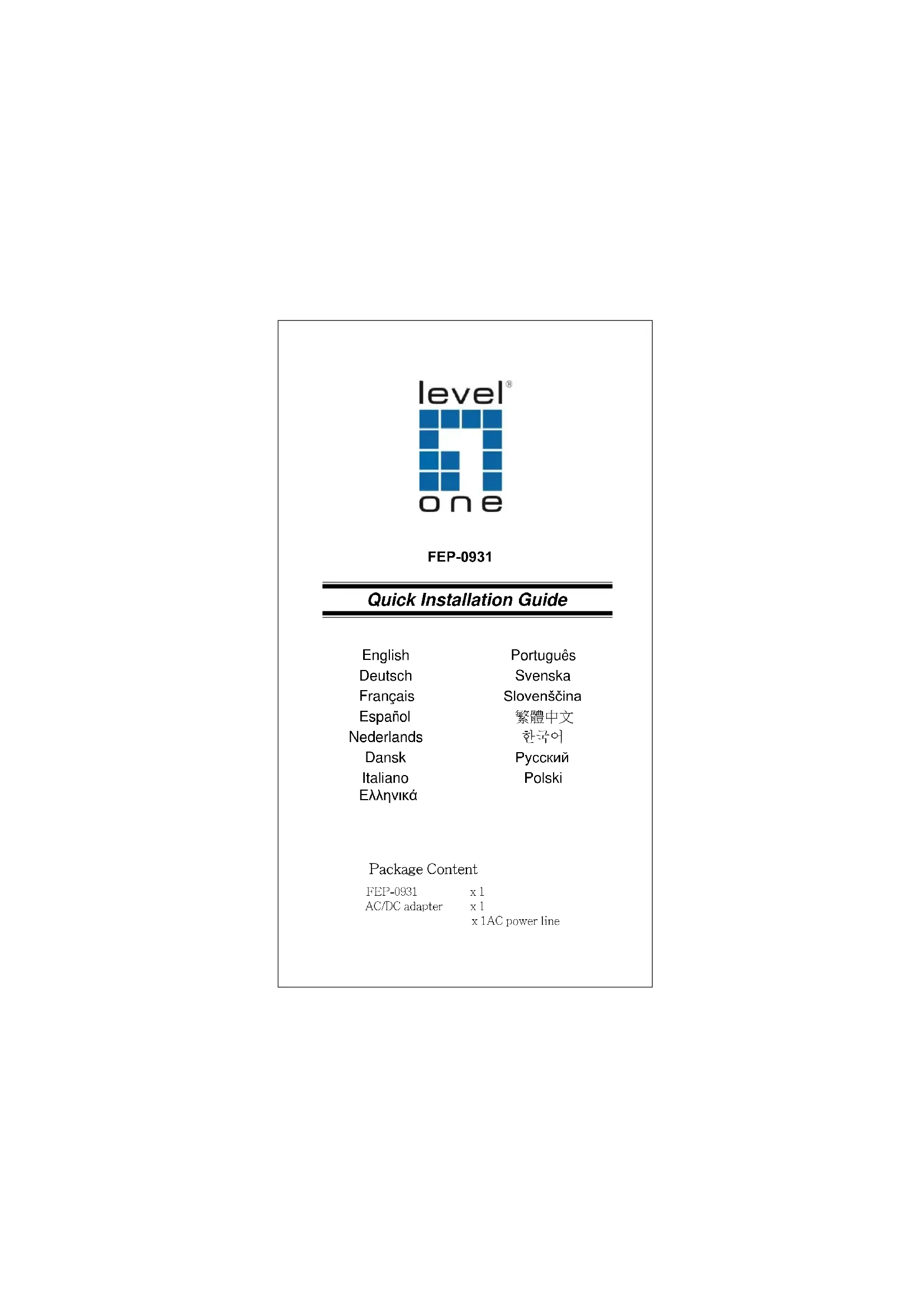 Retrouvez gratuitement la notice de l'appareil FEP0931 LEVELONE au format PDF.