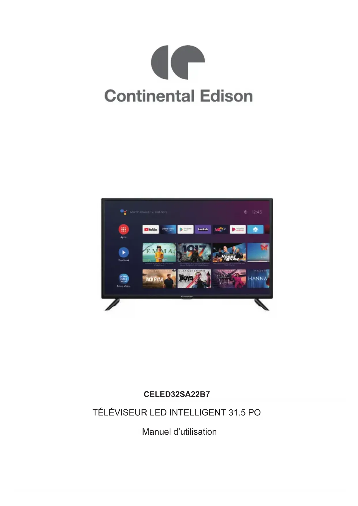 CELED32SA22B7 - Téléviseur CONTINENTAL EDISON - Notice d'utilisation et mode d'emploi gratuit