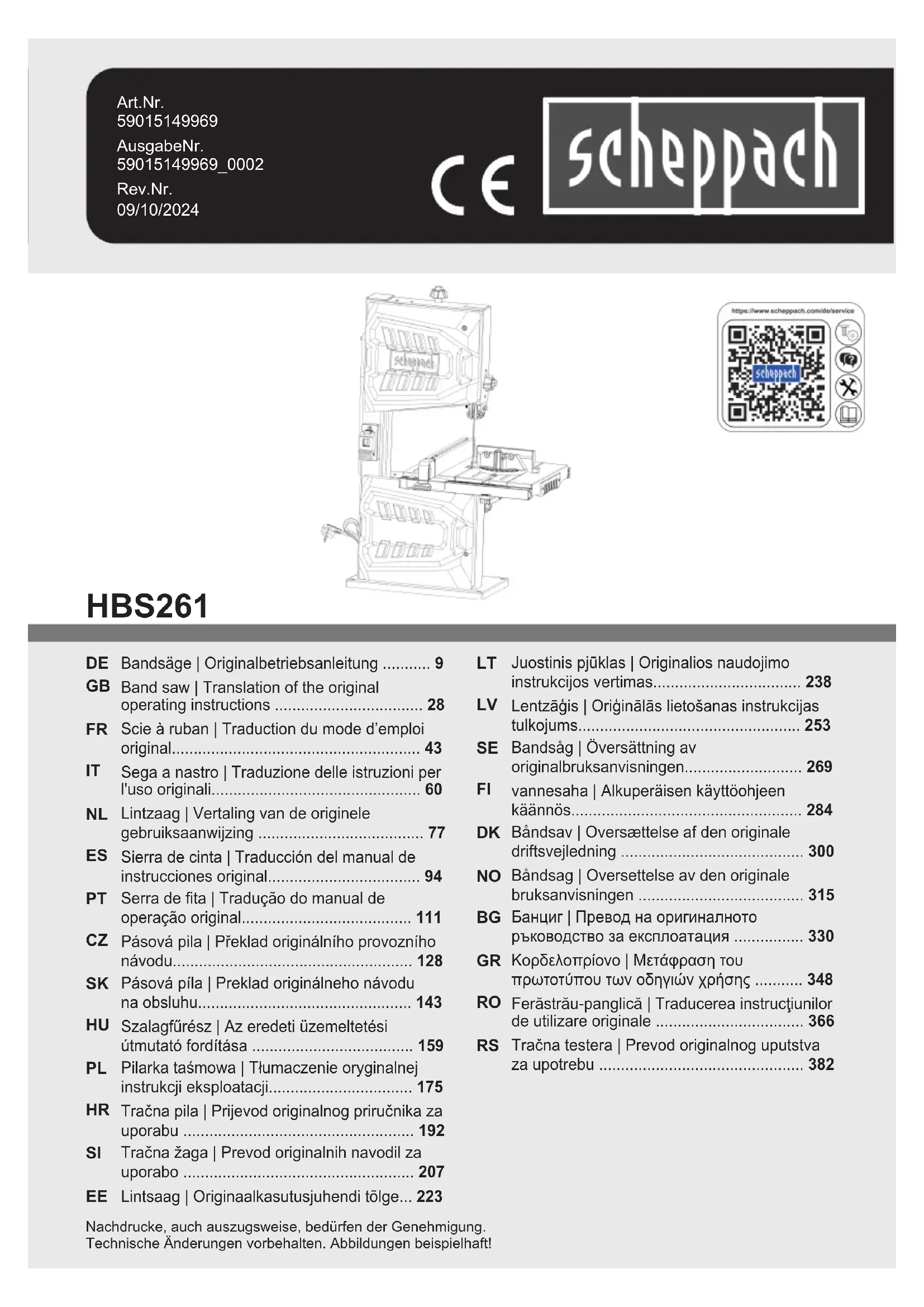 HBS261 - Scie SCHEPPACH - Notice d'utilisation et mode d'emploi gratuit