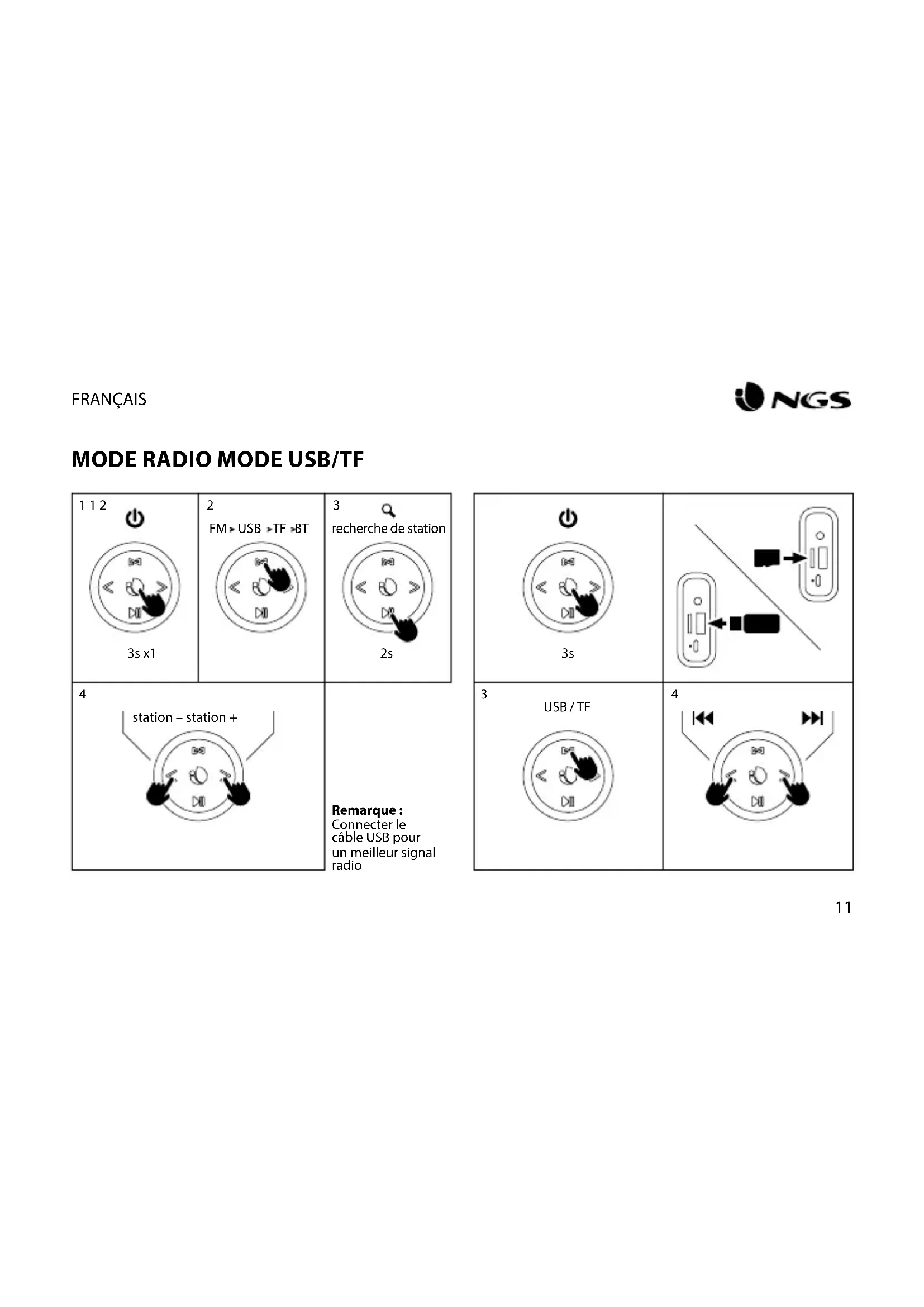 station – station + Remarque : Connecter le câble USB pour un meilleur signal radio