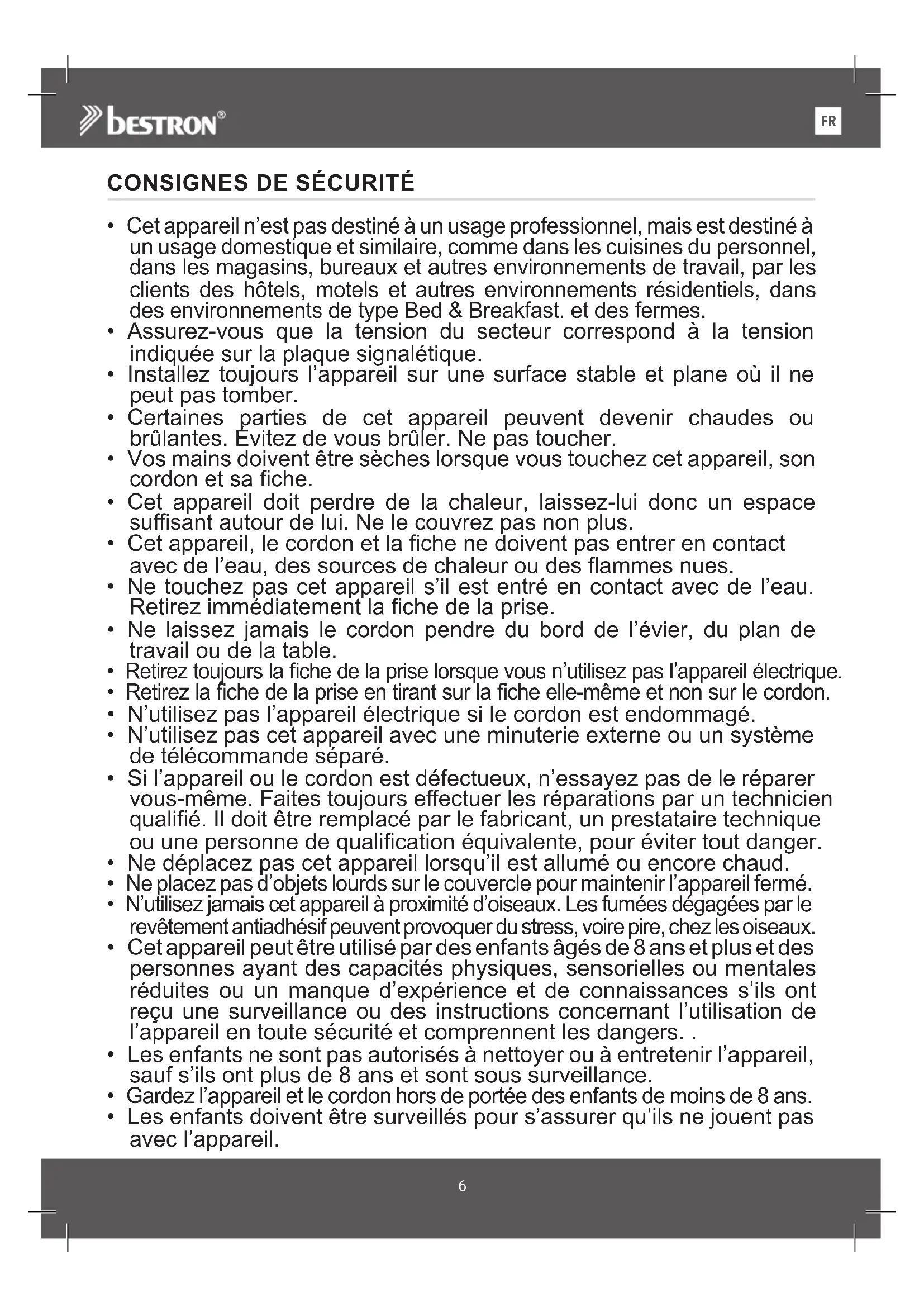 - Gardez l’appareil et le cordon hors de portée des enfants de moins de 8 ans.