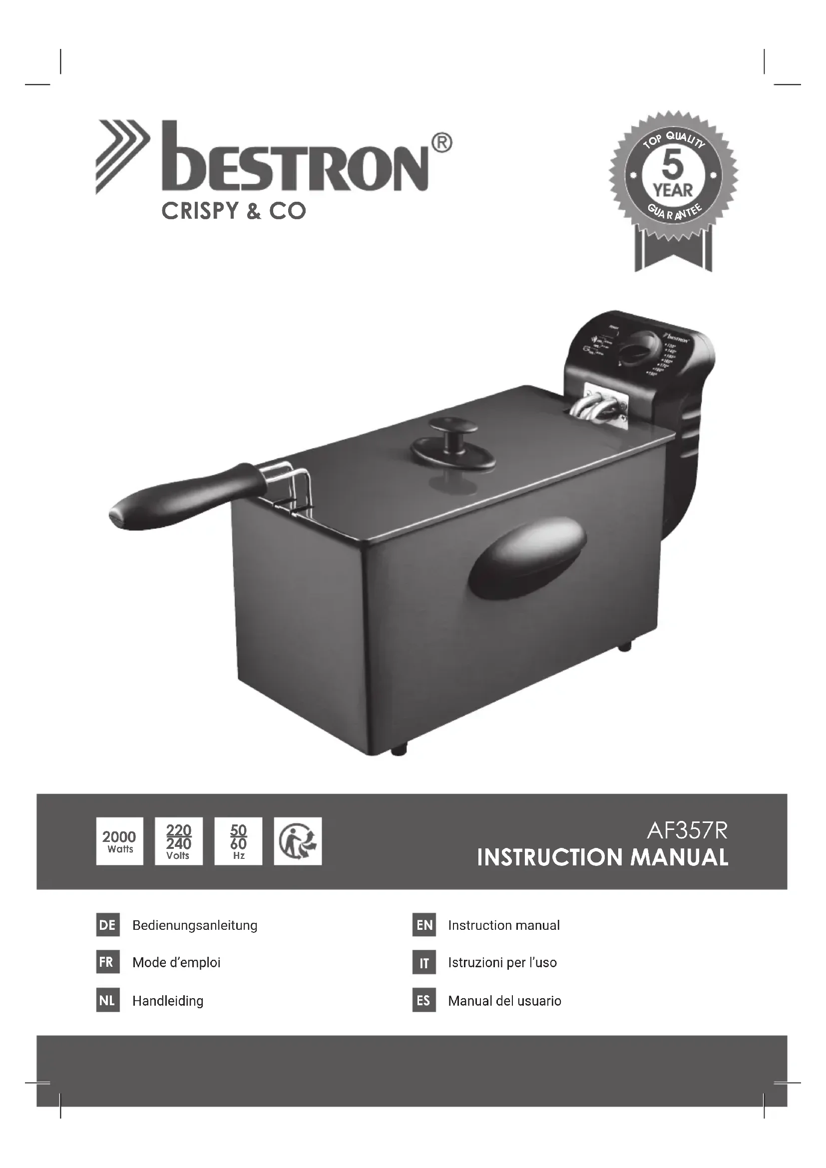 Retrouvez gratuitement la notice de l'appareil Crispy & Co AF357R BESTRON au format PDF.