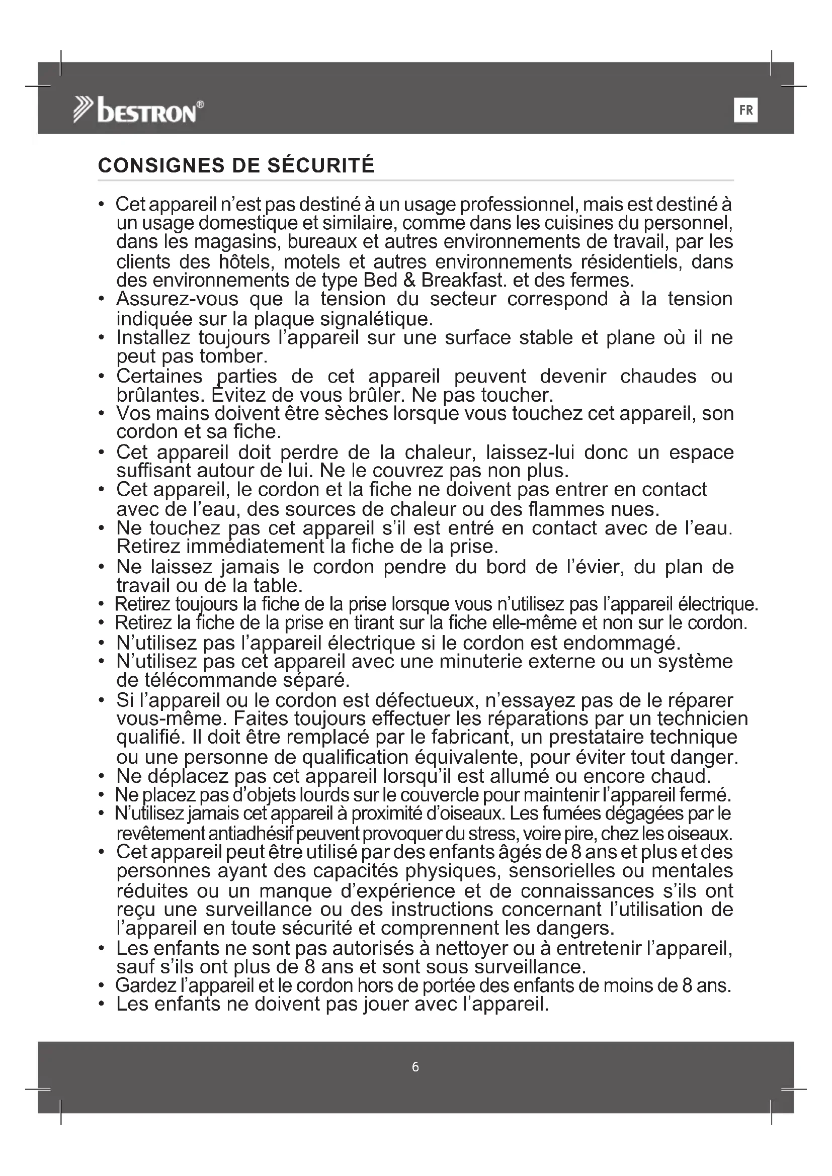 - Les enfants ne doivent pas jouer avec l’appareil.7